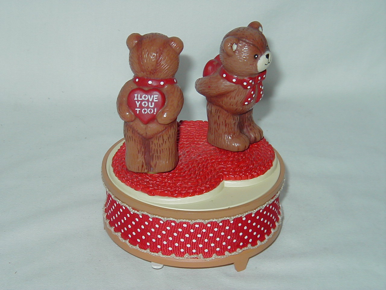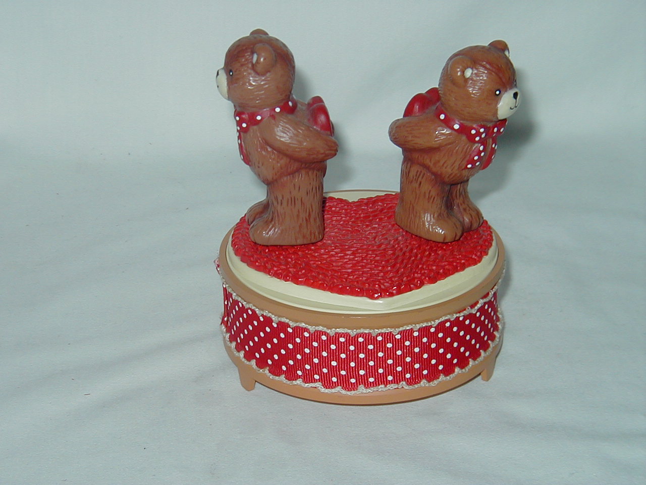 Two bears on top both rotate on own axis with music. |