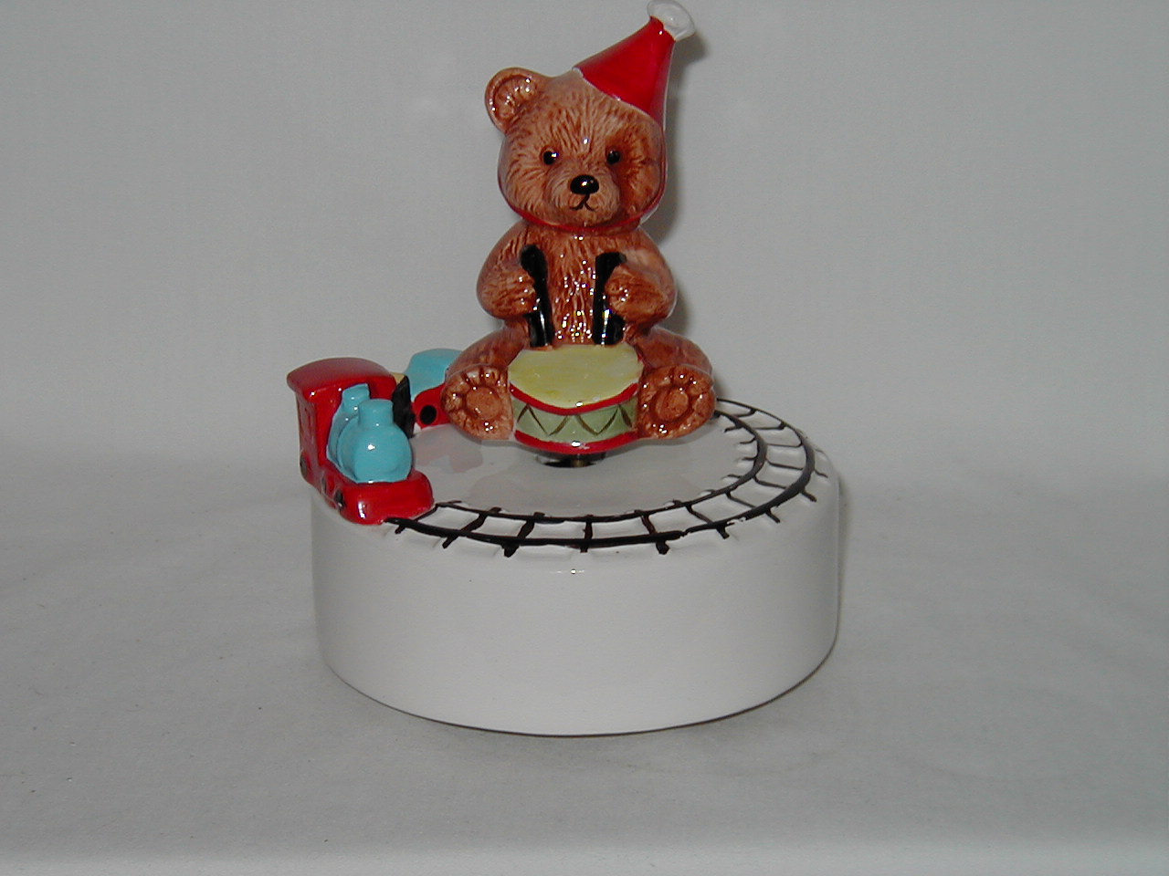 Action Bear Sitting with Drum and Red Hat with Toy Train