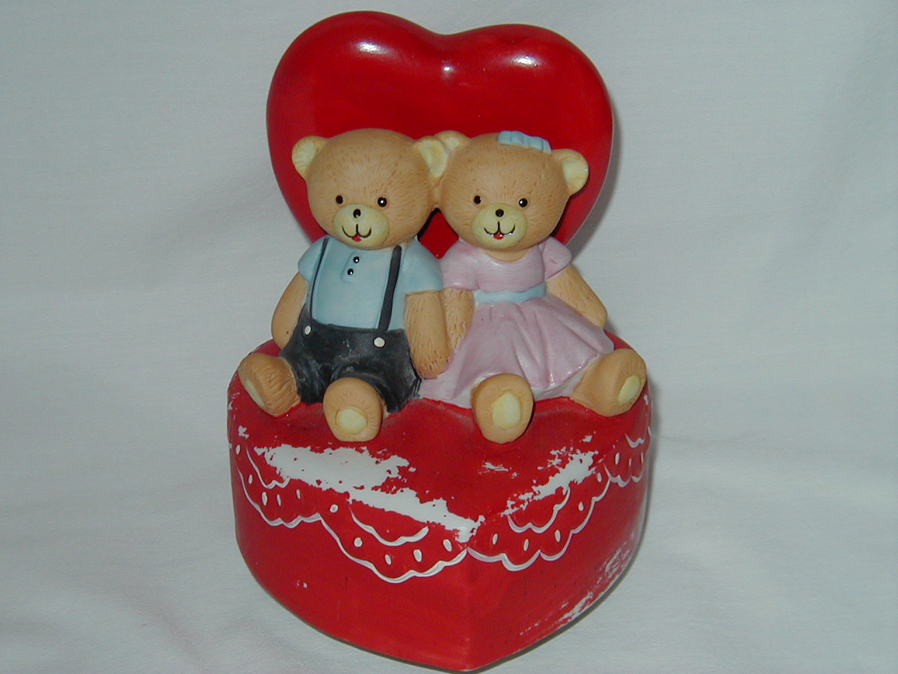 MSR Bear Boy and Girl Sitting on Red Heart Shaped Bed
