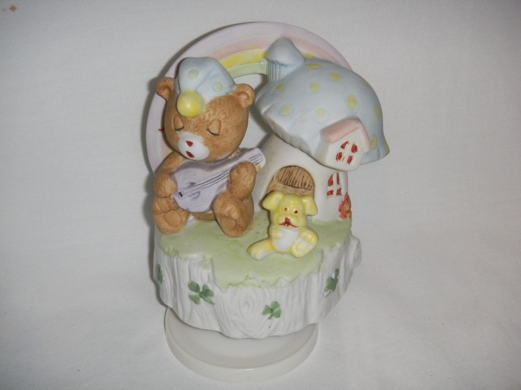 Artmark Bear Playing Guitar with Dog Against Mushroom House