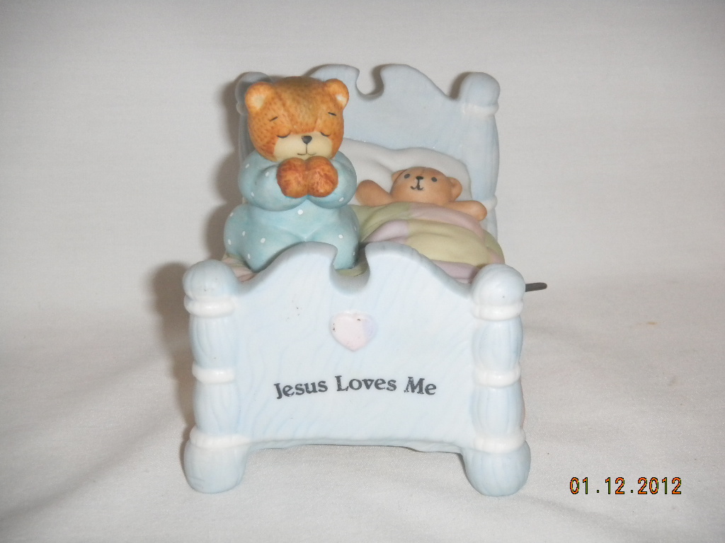 Lucy Rigg (Licensee Enesco) Bear Praying on Bed ' Jezus Loves Me '