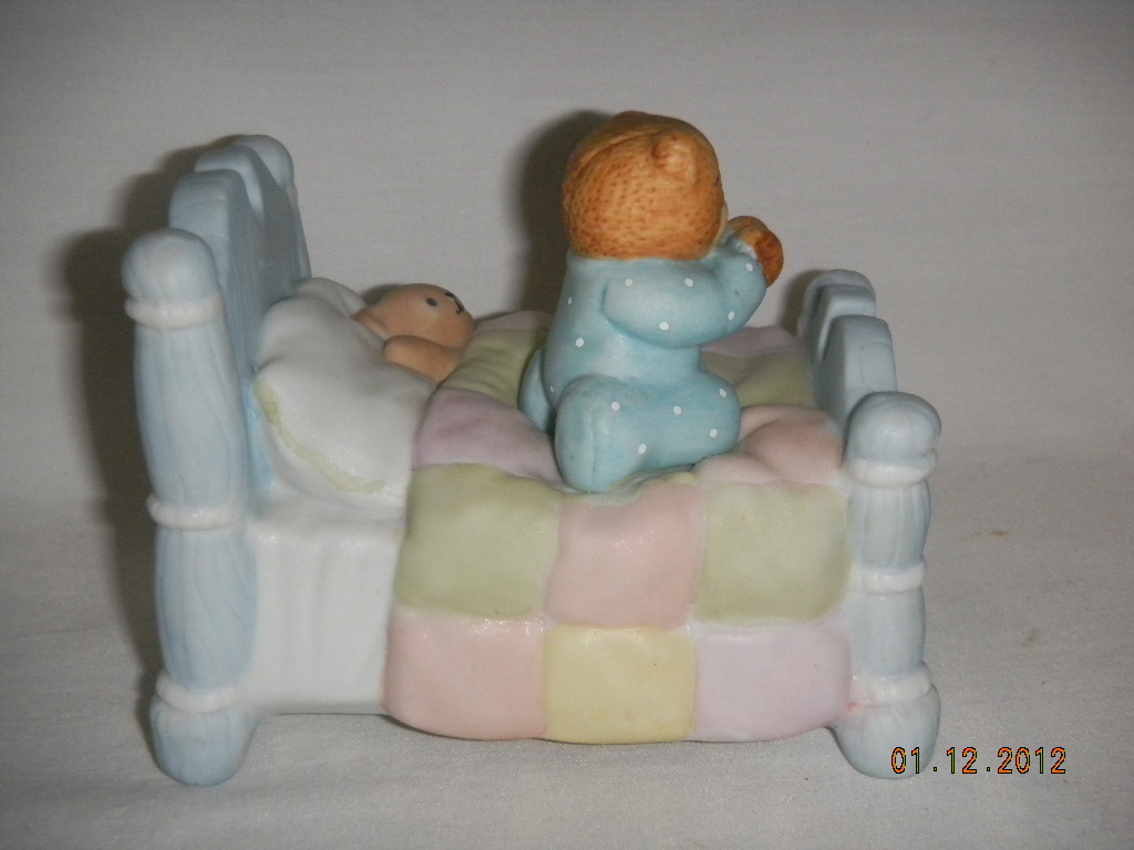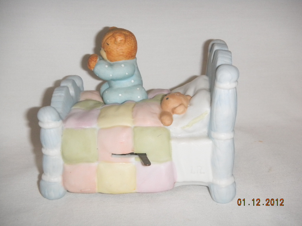 Lucy Rigg Licensee Enesco. Jezus Loves Me. L.R (imprinted on side bed) |