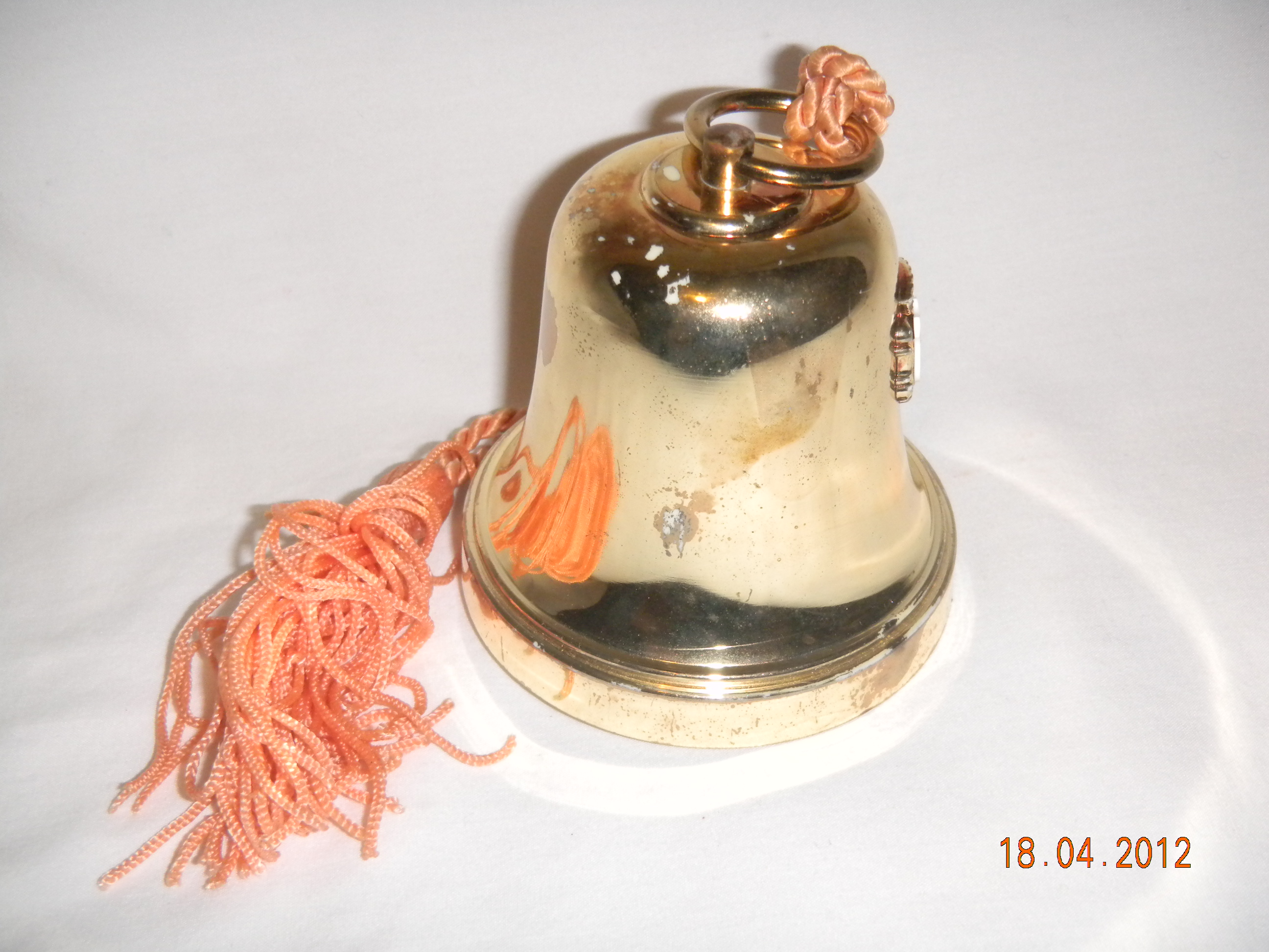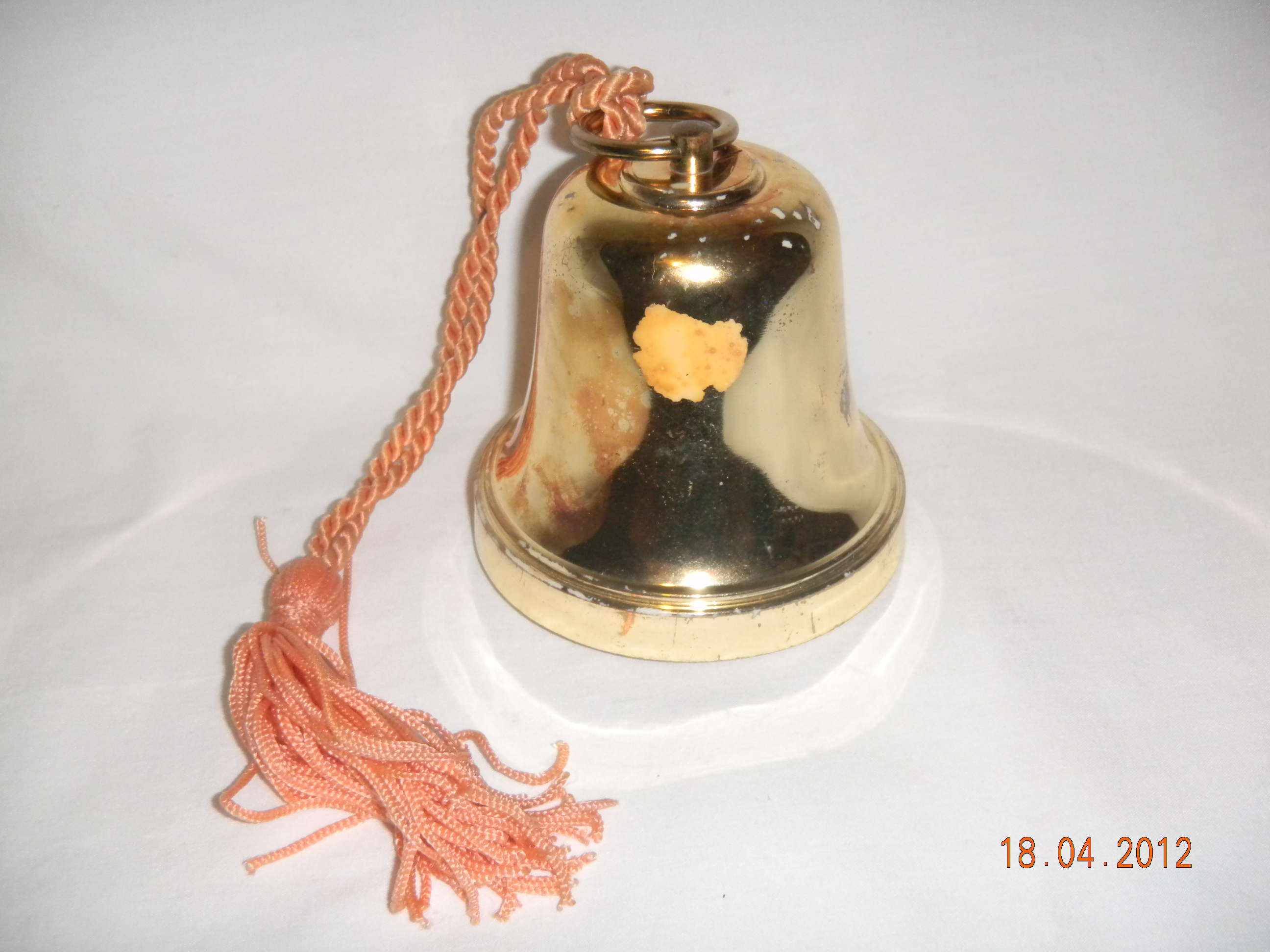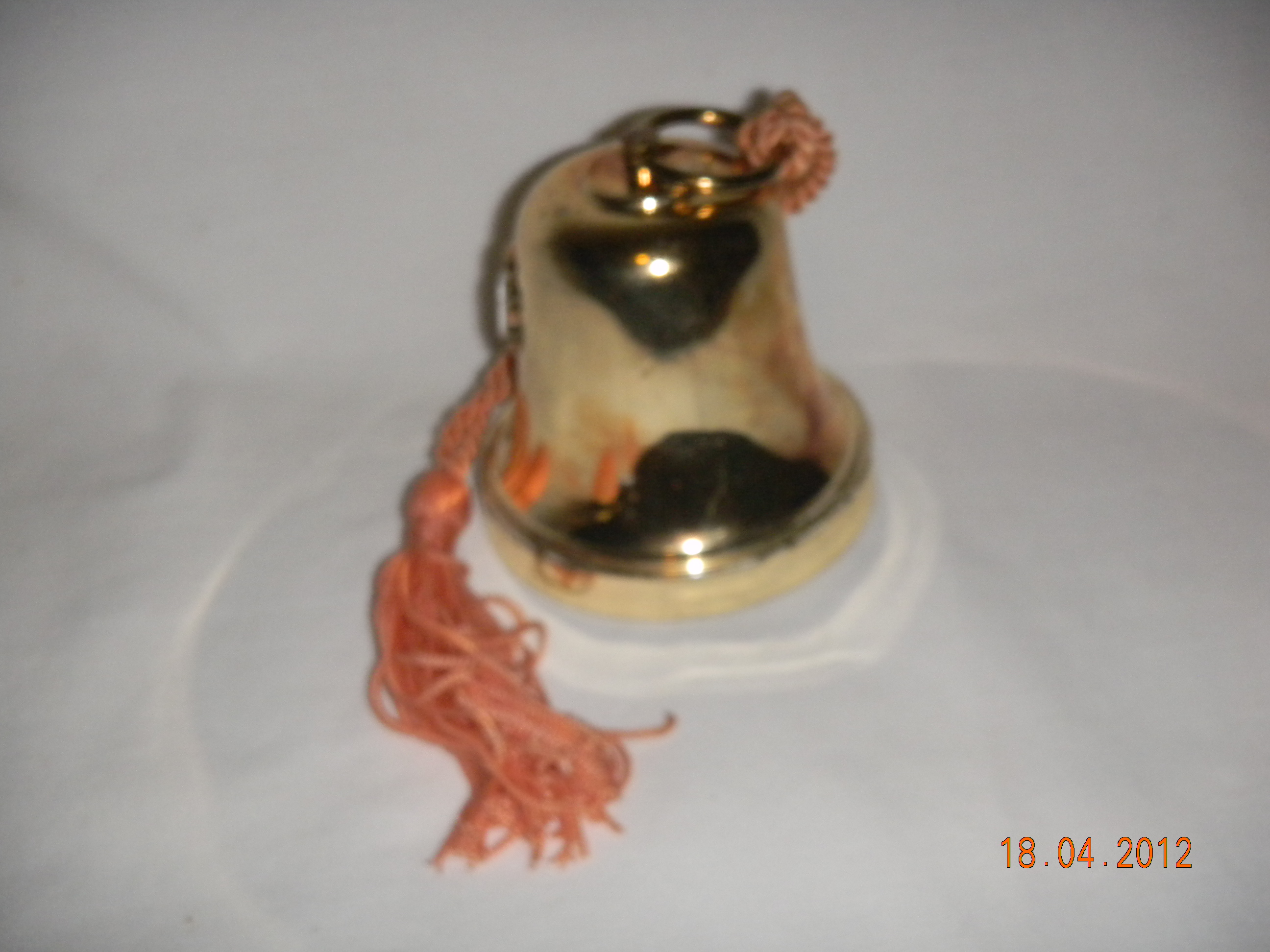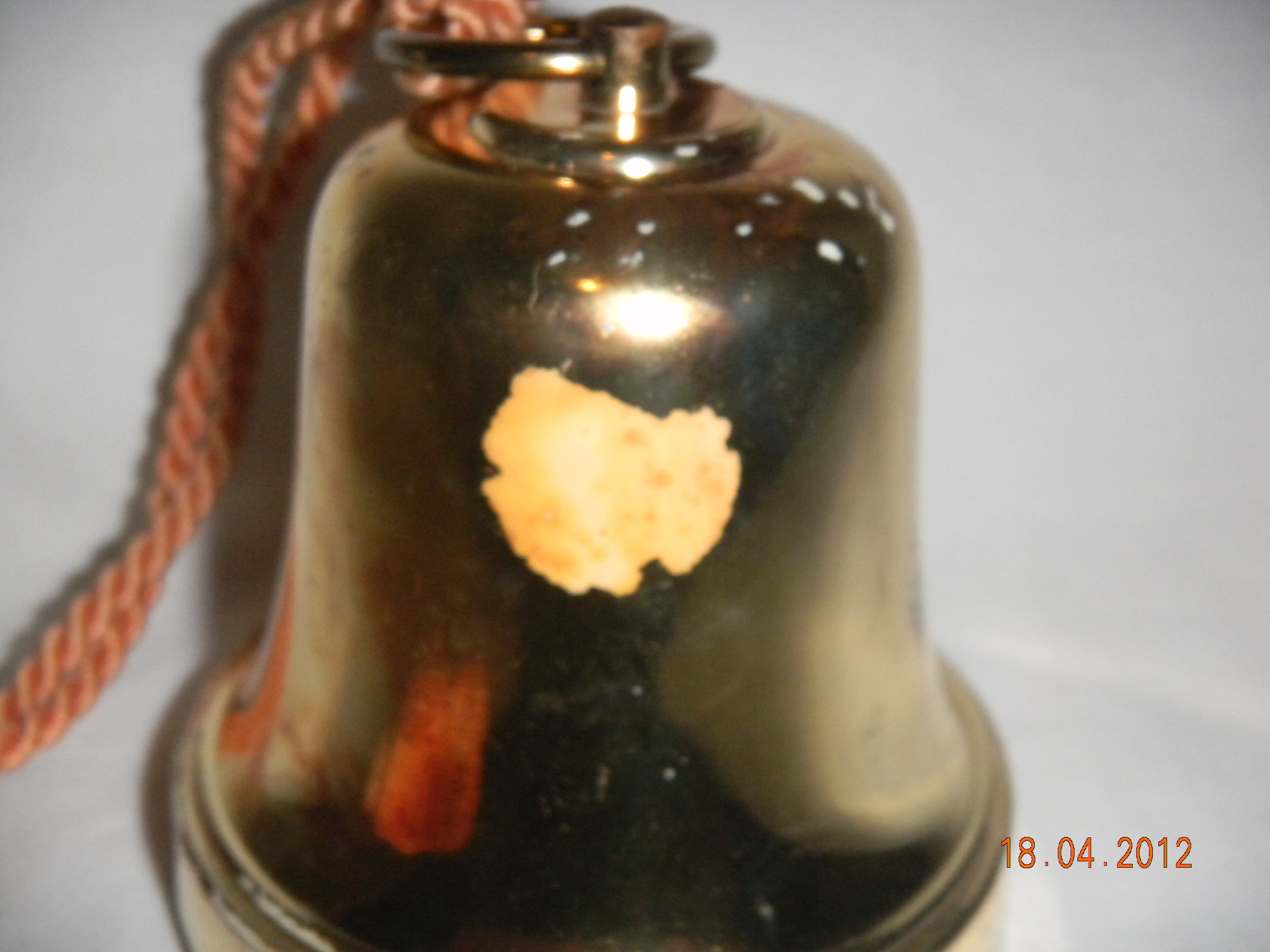 Medium. Item had label seller Suncoast Hospice Thrift Store and on taking it off carefully, stil took that part 'gpld' skin off; thank you not Suncoast for miserable label. |