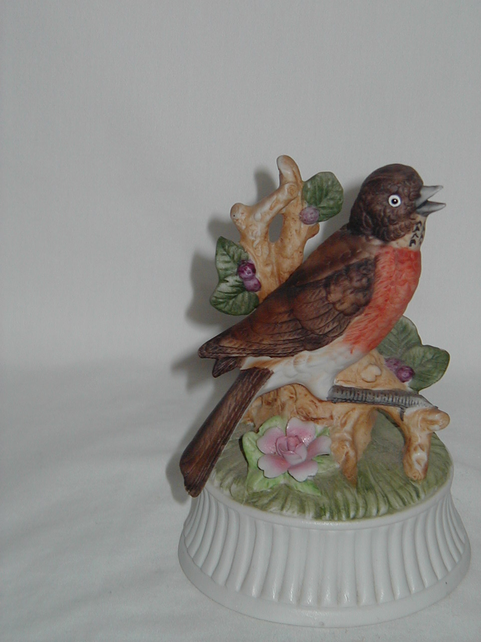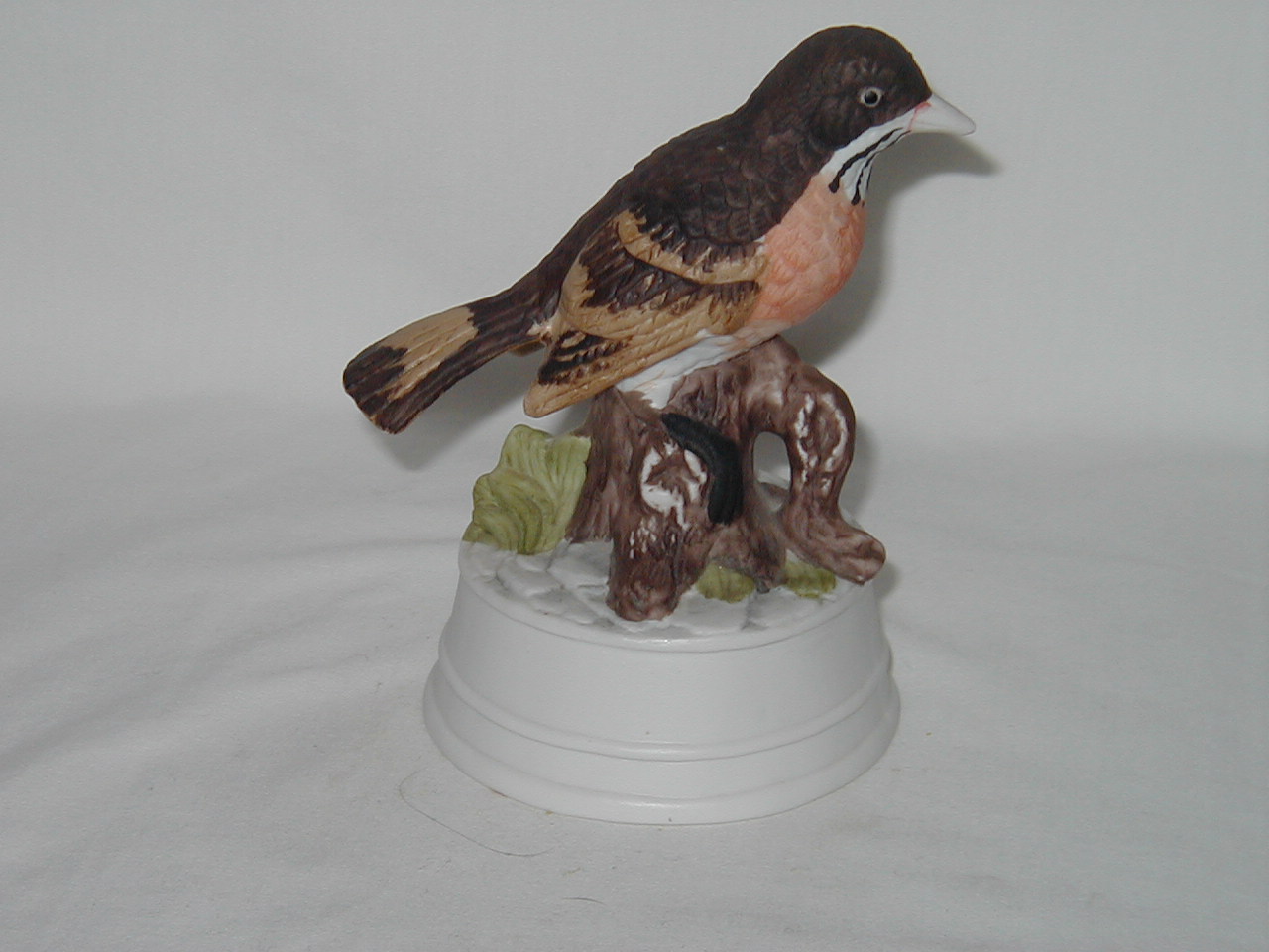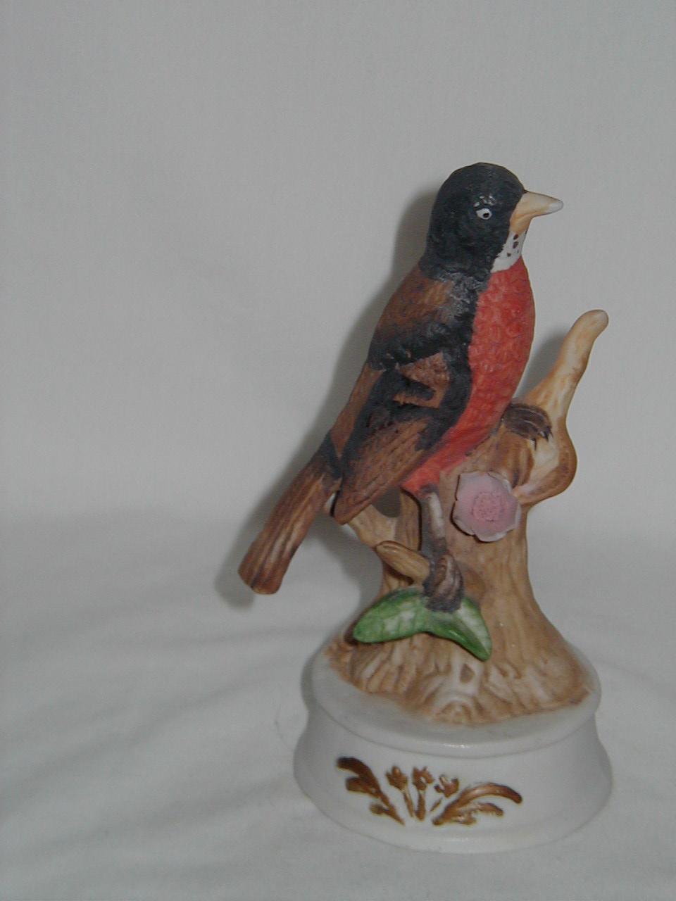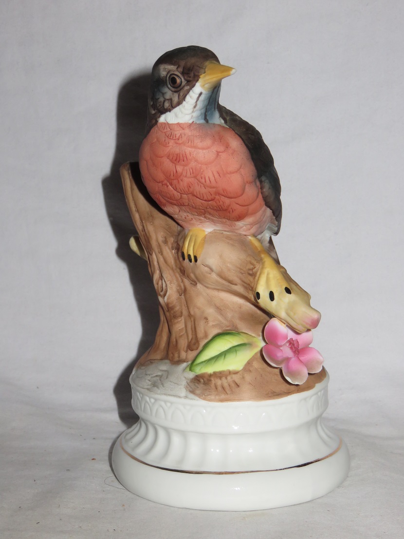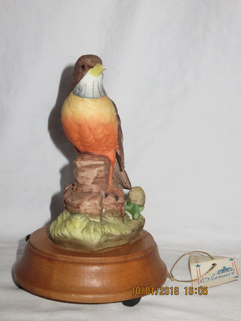 Arnart Brown Bird Orange Breast Large Flower on Porcelain Base