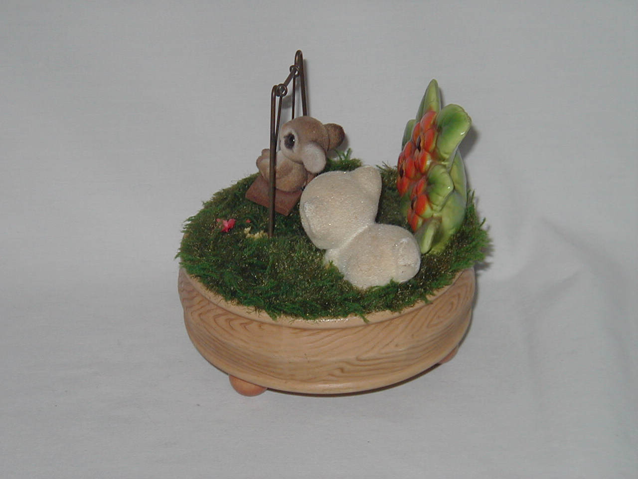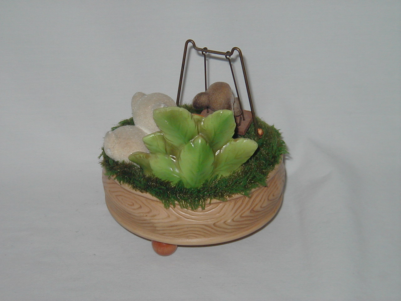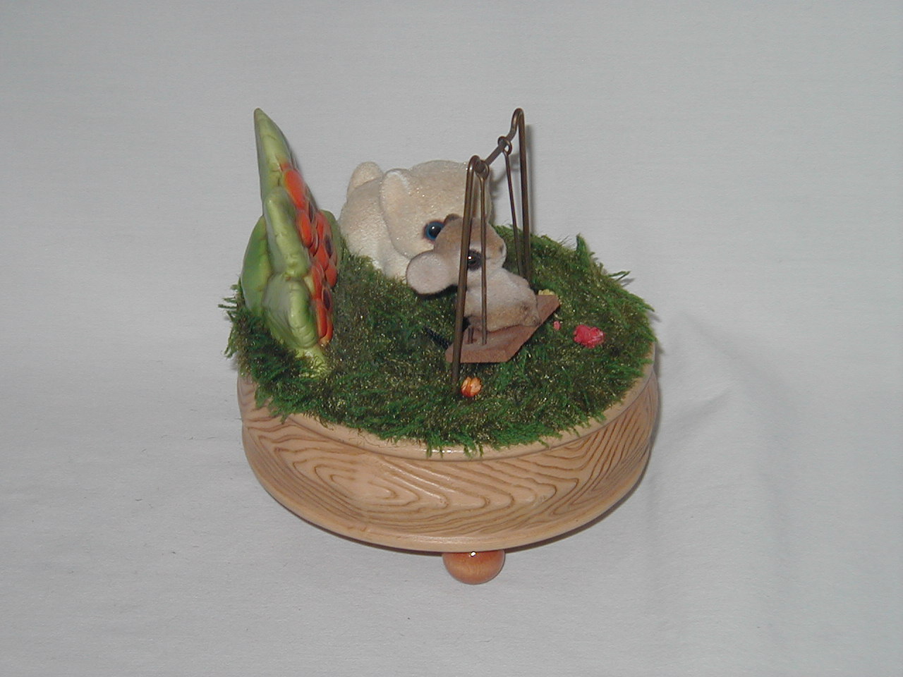 Porcelain base, animals felt?, meadow cloth, metal swing, board bott |