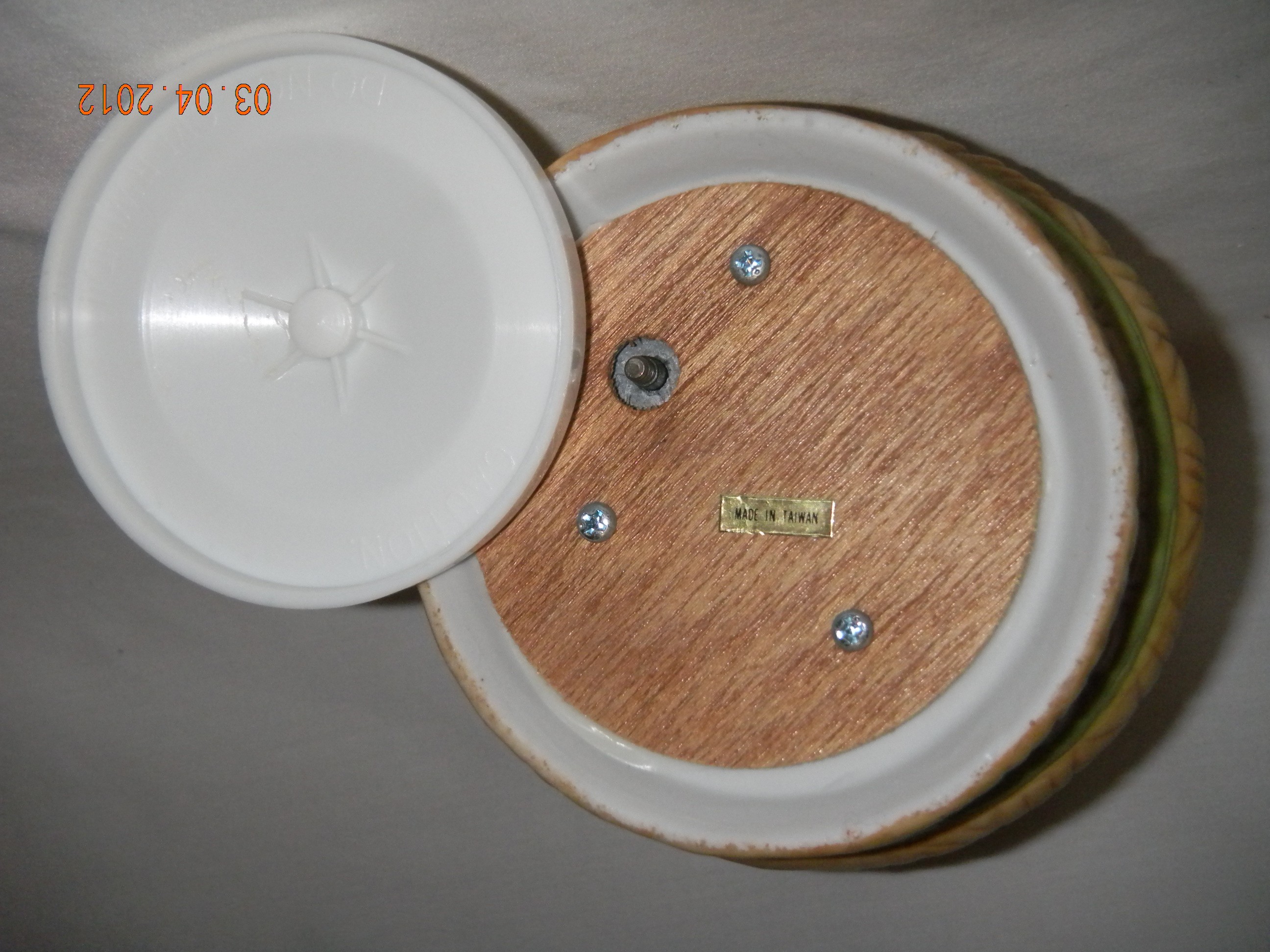 Figurine rotates on foot with music. |