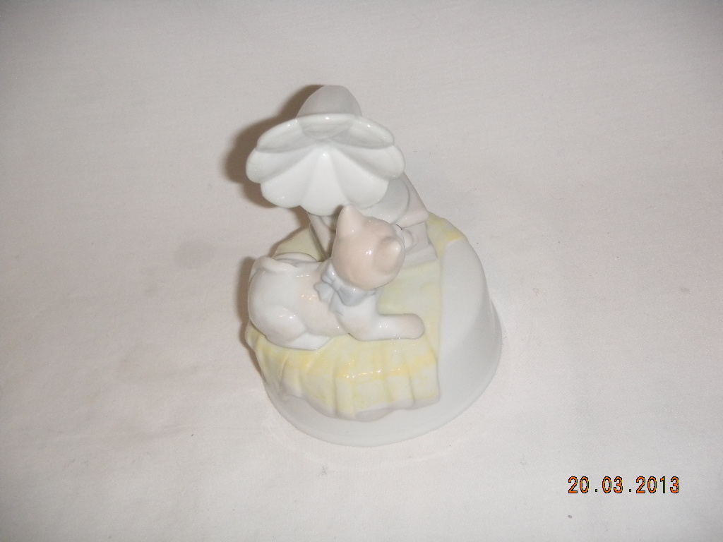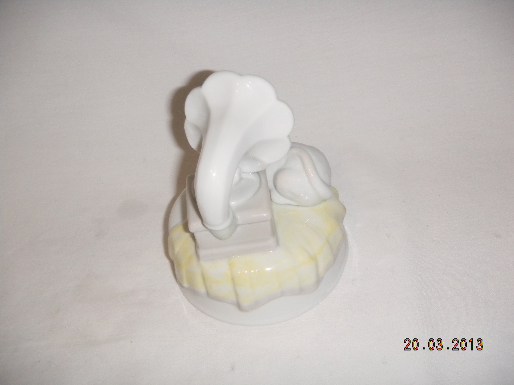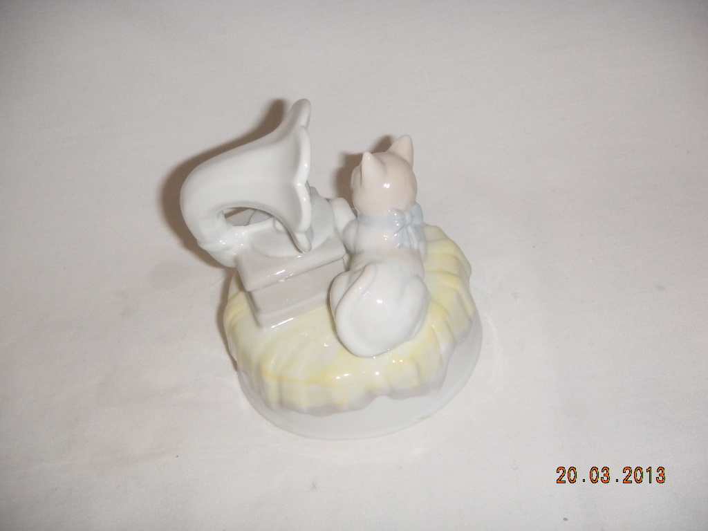 The figurine itself looks to be from the seventies or eighties, but music mech. is from the nineties or later. Music mech. replaced? but if so, with a tune relative to the cat motif. |