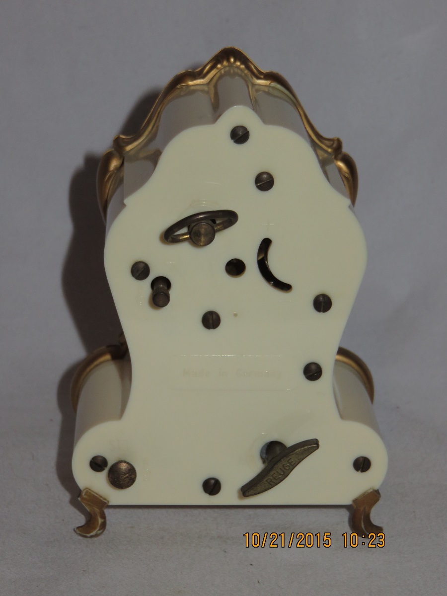 All works. Same outer as A 061 001 and 008, but different clock plate (different name, West, instead of Western Germany, different song, different music mech. mfg? |