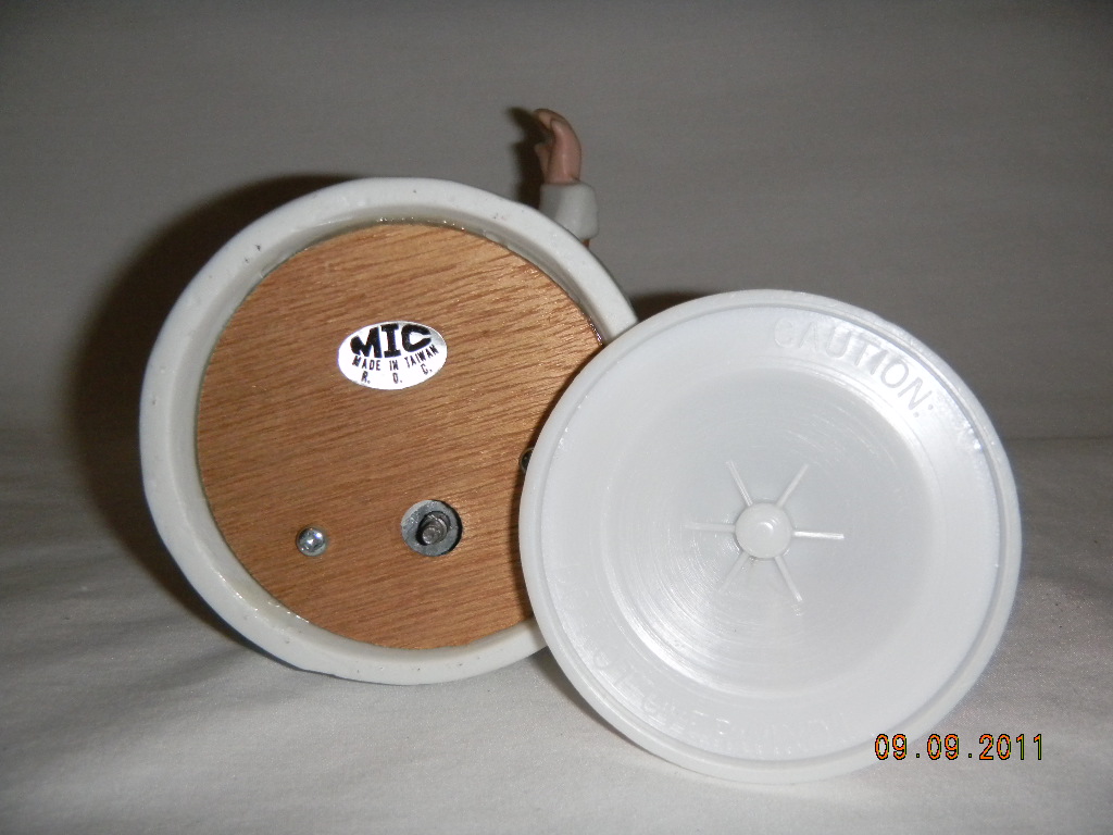 Yes, plastic, ' Caution: Do not overwind!! '. |