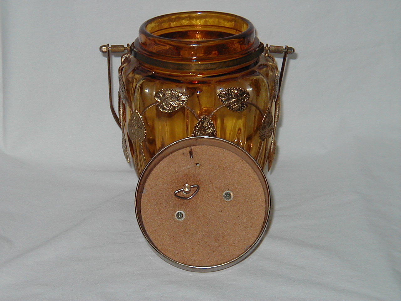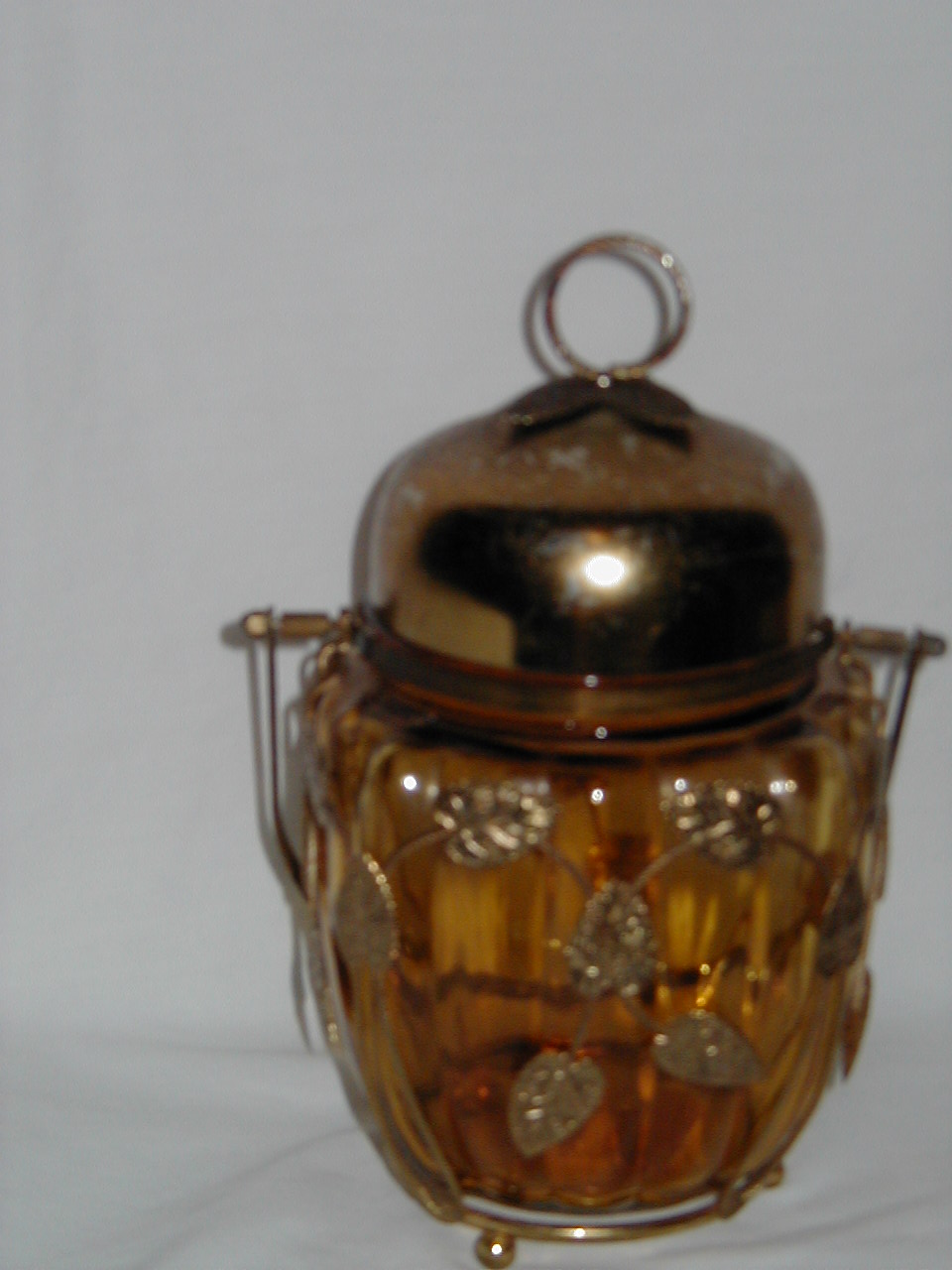 Glass jar within metal cover and metal lid |