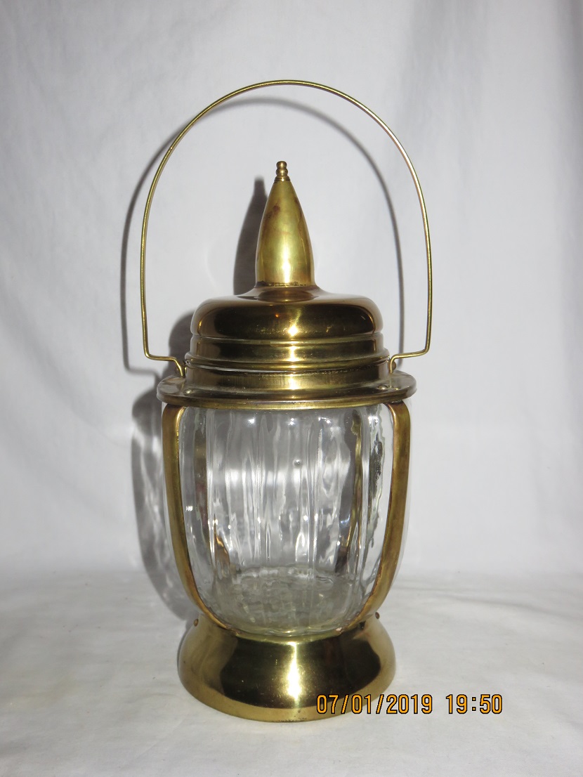 Glass jar within metal cover and metal lid |