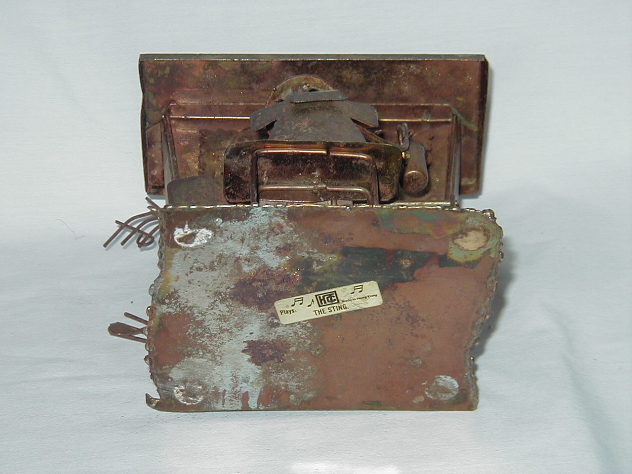 Medium, rusty and battered, music mechanism plays, butcannot be wound tight. |