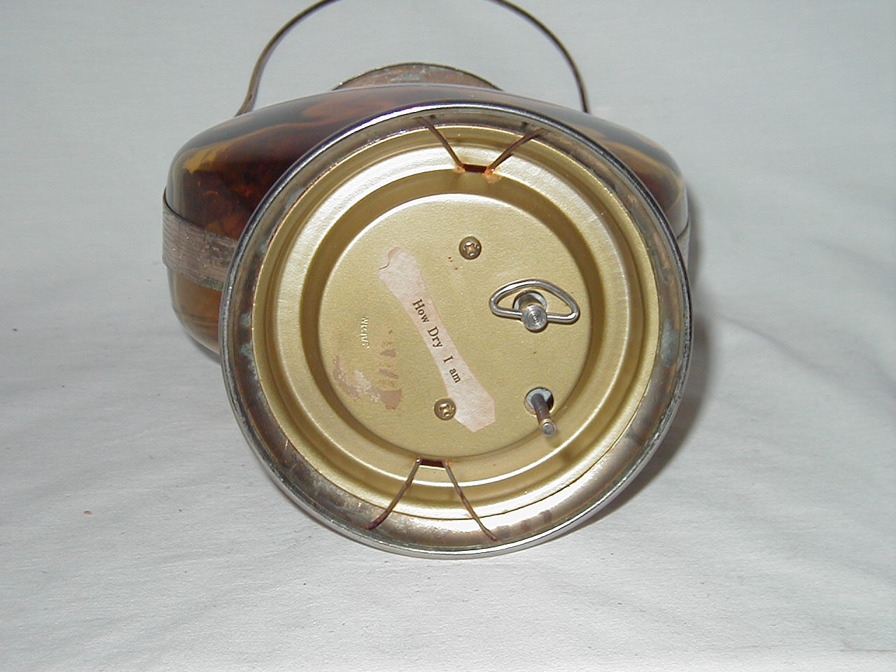 Key, metal, in bottom. Music only plays when decanter is lifted. |