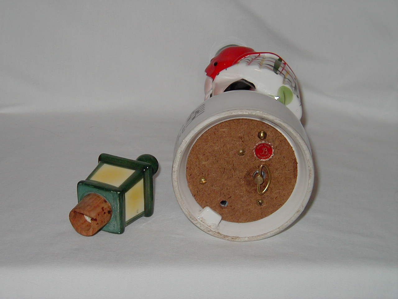 Medium, on/off missing,slight tear in bottom, spot on back. |