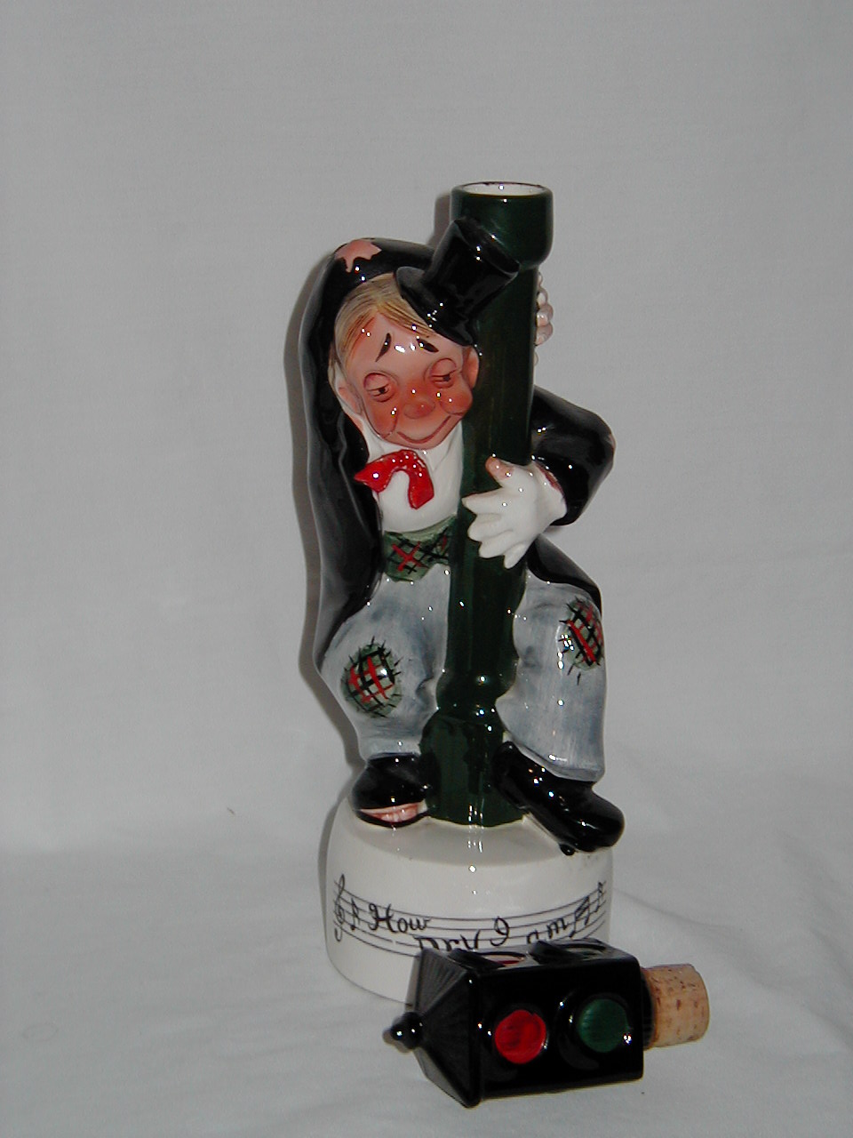 Yes, metal pin, in bottom. Lift decanter to start music. |