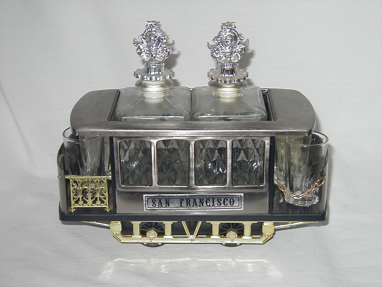 Cadillac Cabriolet with 4 Glasses and Bottle