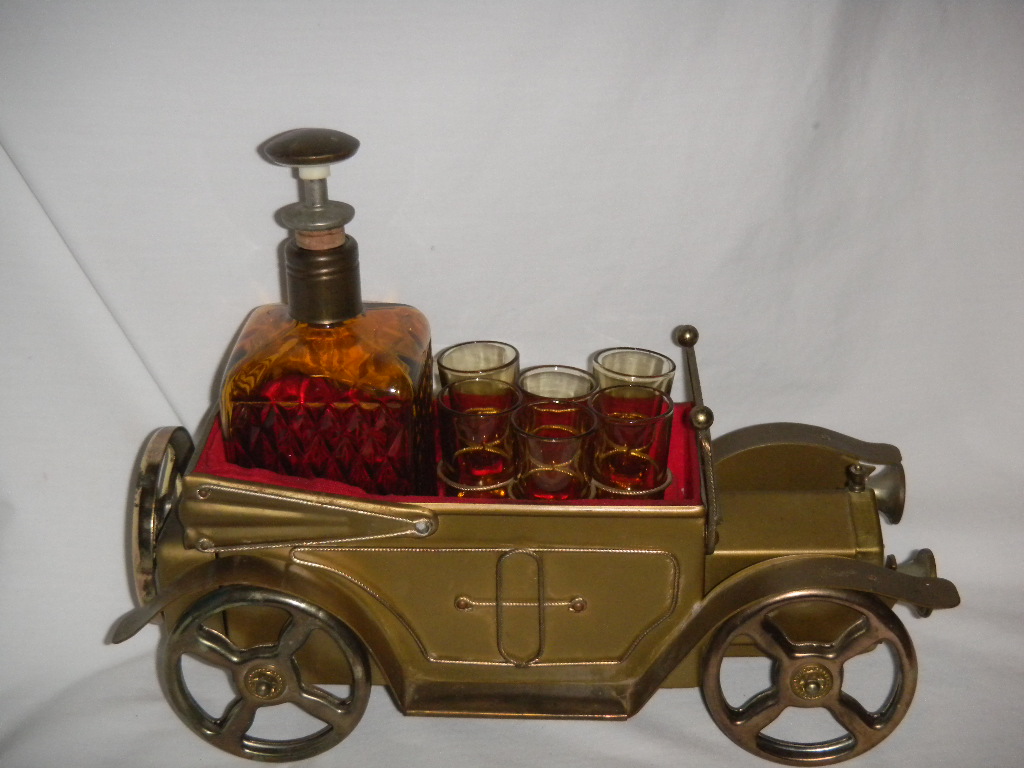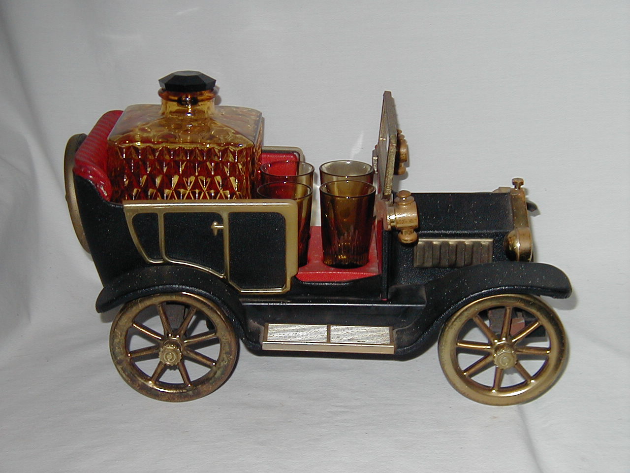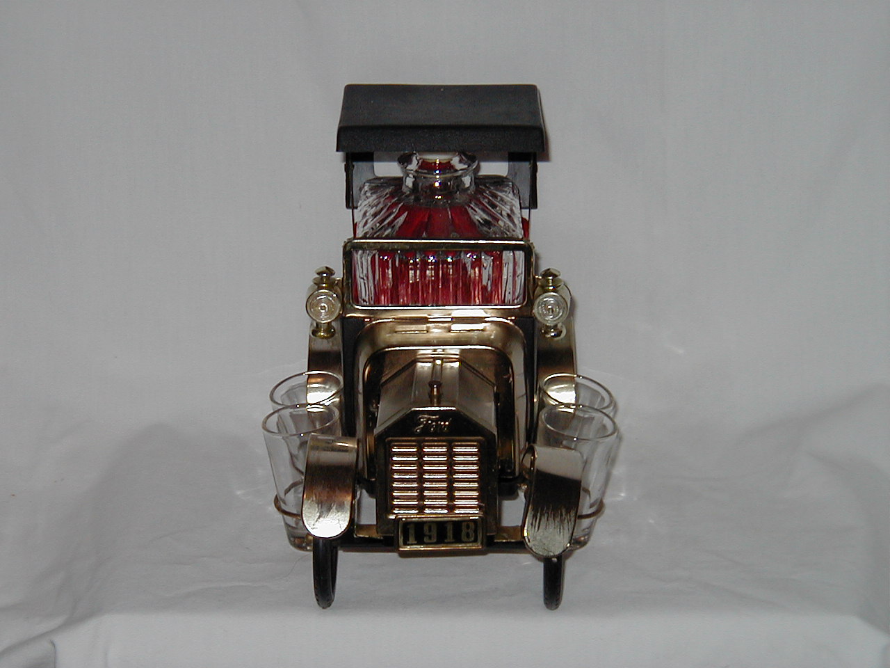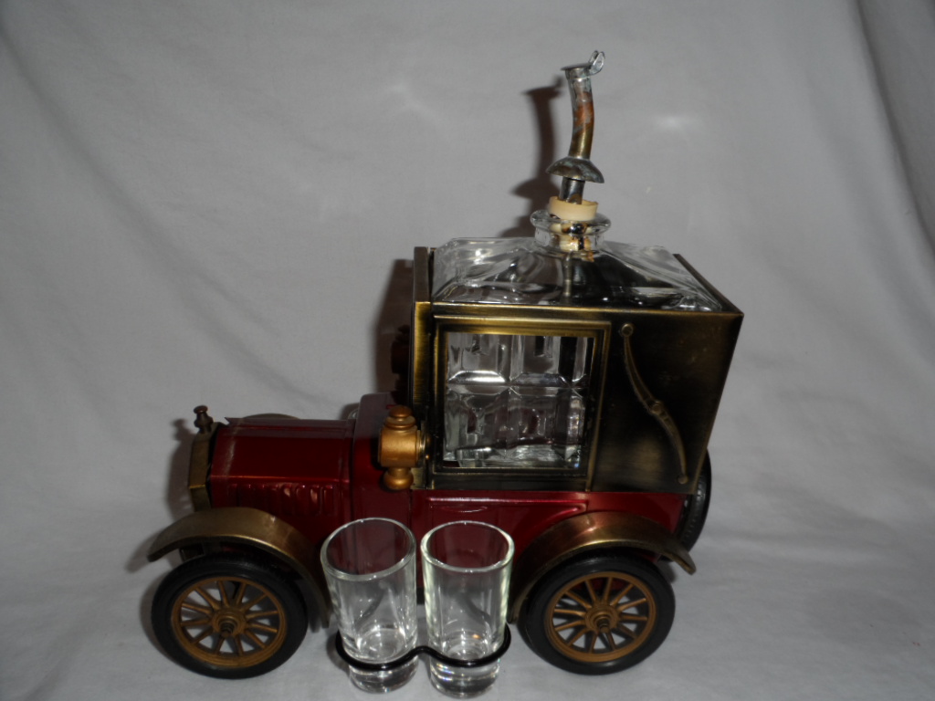 Ford 1918 Red Car with Decanter and 4 Glasses