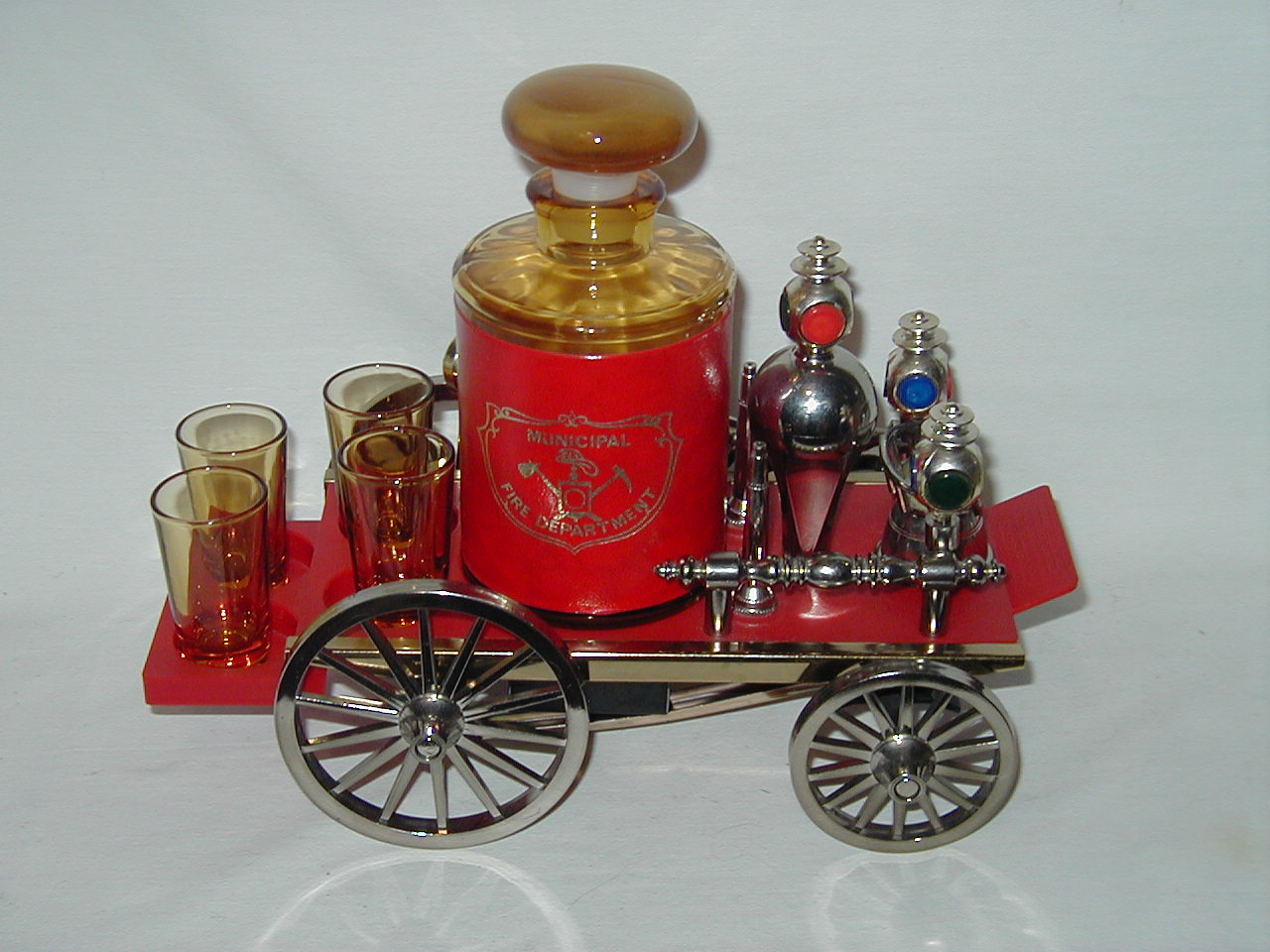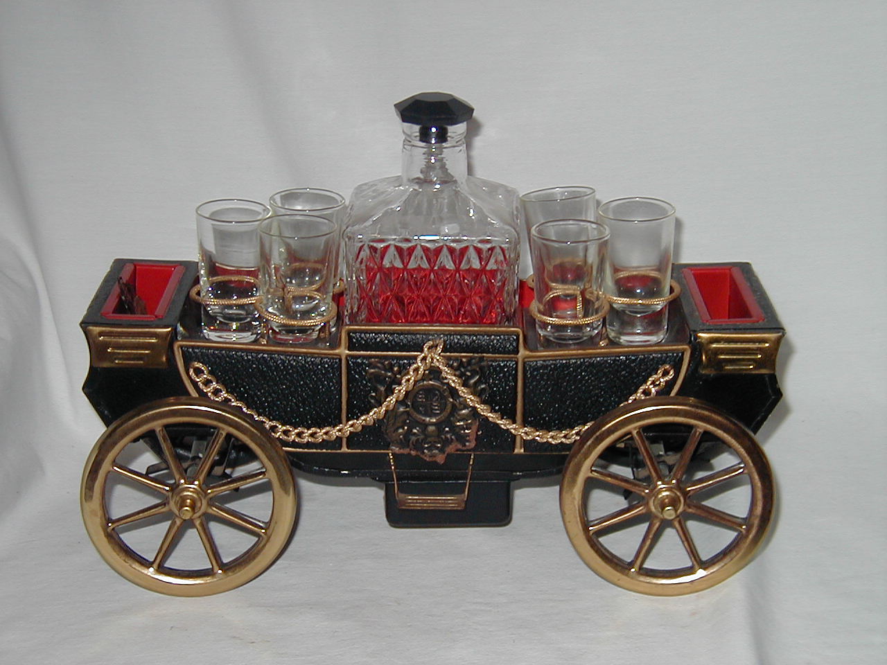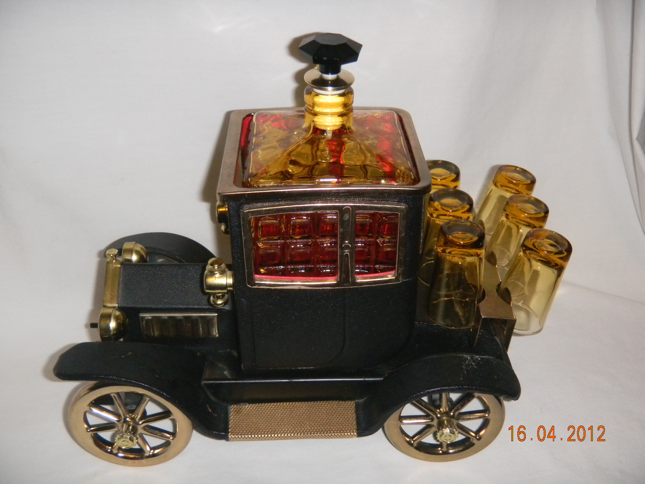 Ford 1918 Red Car with Decanter and 4 Glasses