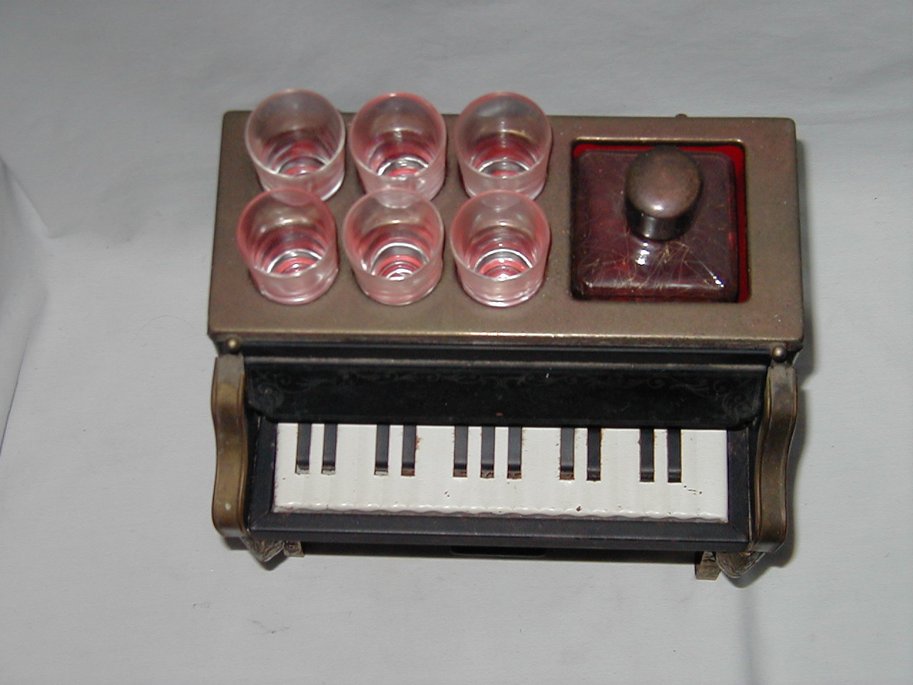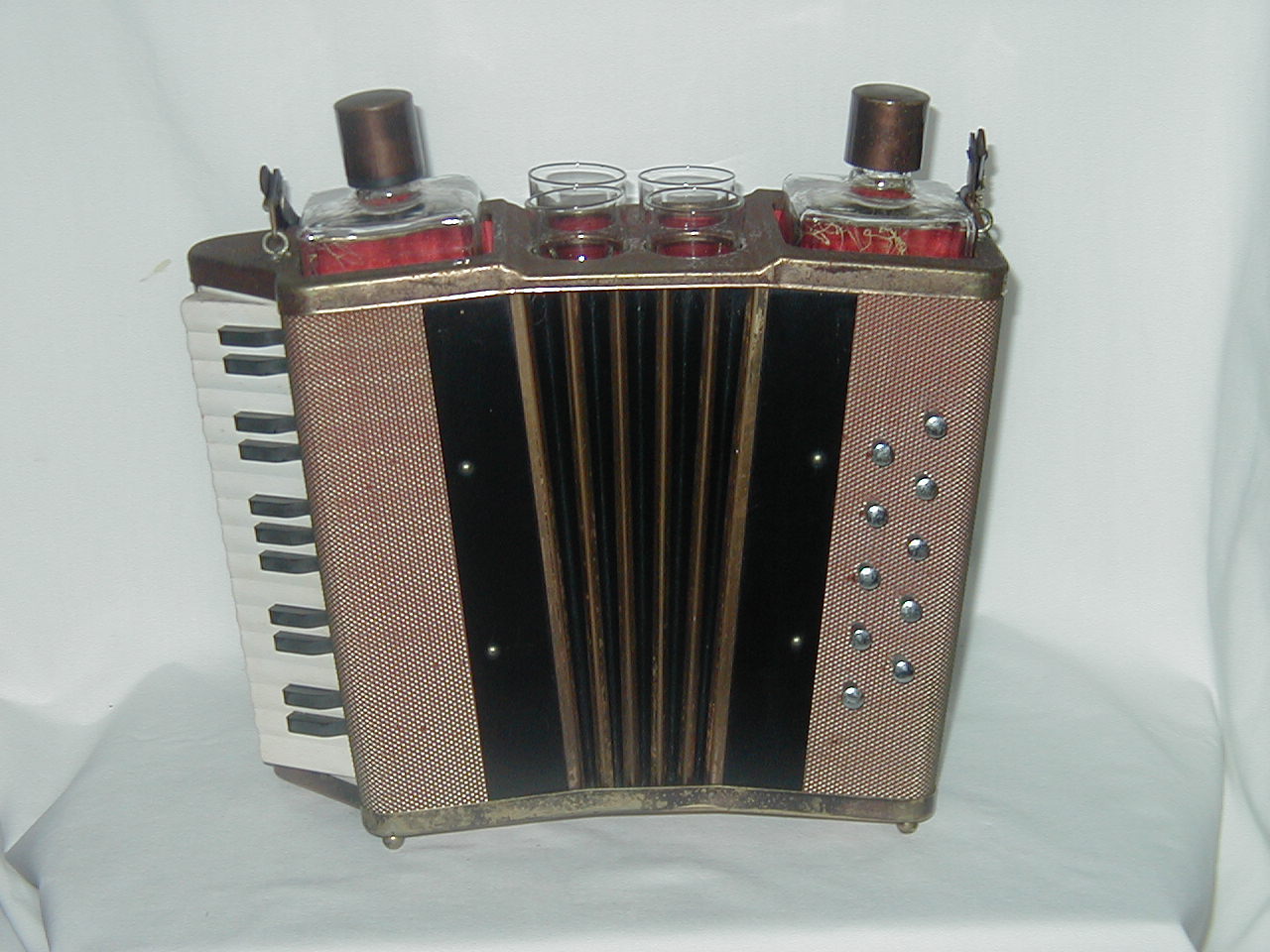 Accordion with Two Bottles and Four Glasses