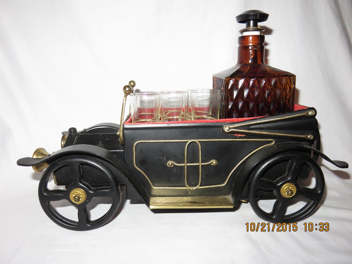 Ford 1918 Black Car Movable Roof with Decanter and 4 Glasses