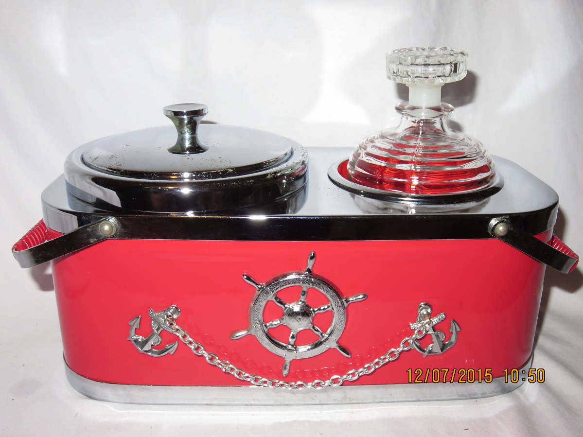 Container Red Nautical Motif with Bottle and Ice Holder