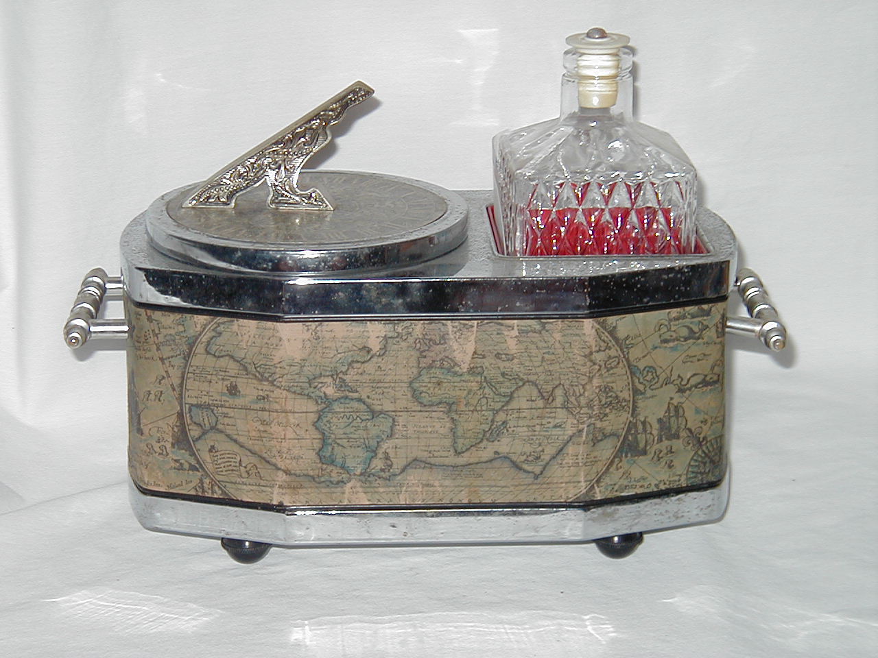 Norleans Container with World Map Bottle and Ice Holder with Sun Dial