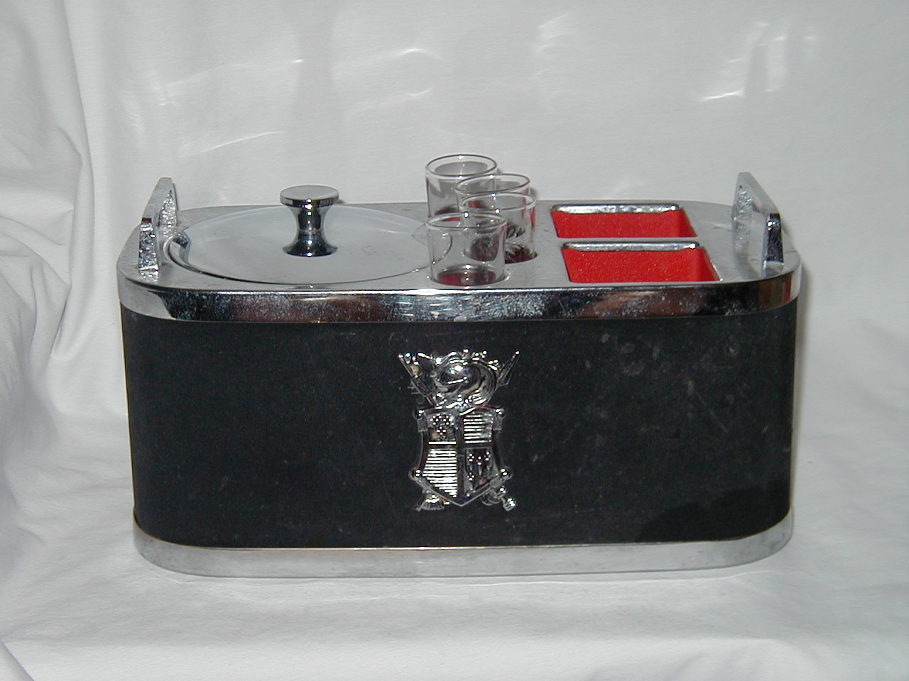 Container Black with Heraldic Sign Ice Holder 2 Bottles and 4 Glasses