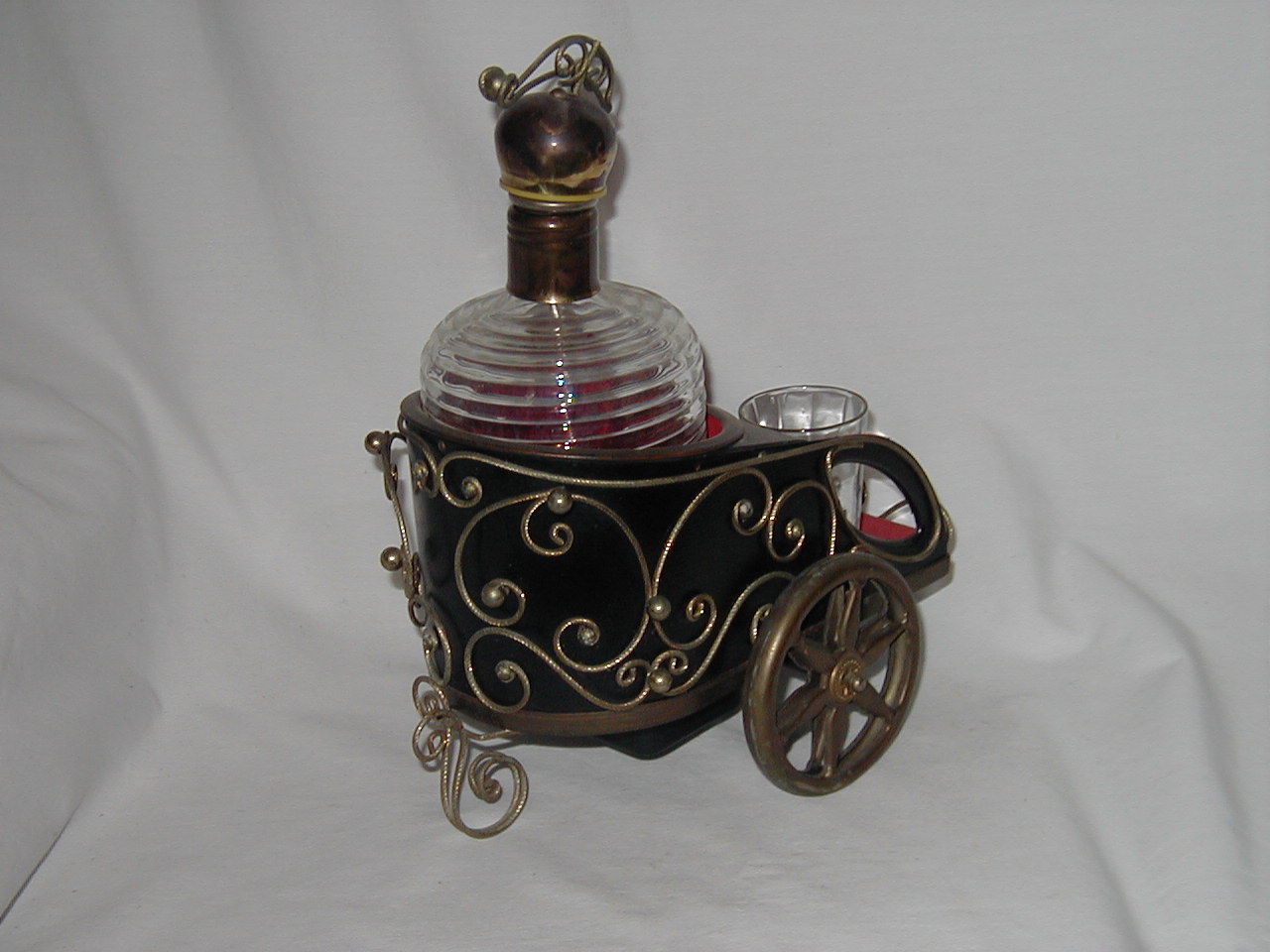 Key, metal, in bottom. Music only plays when bottle is lifted. |