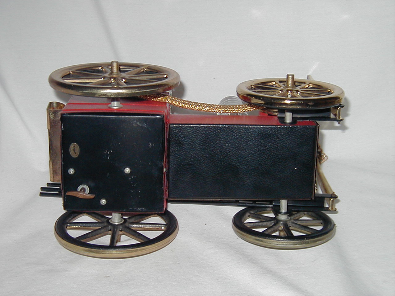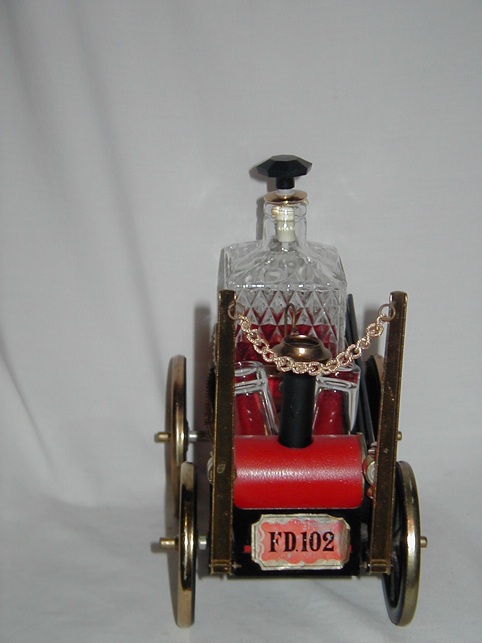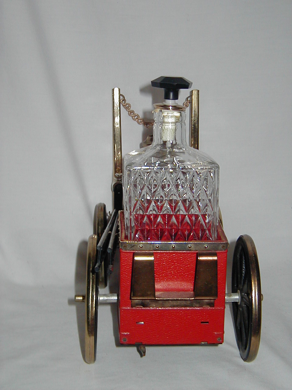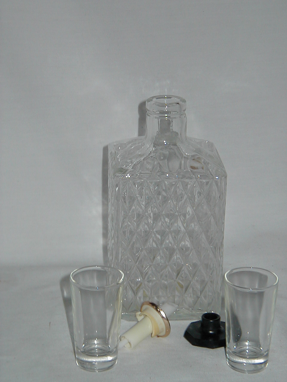 Key, metal, in bottom. Music only plays when bottle is lifted. |