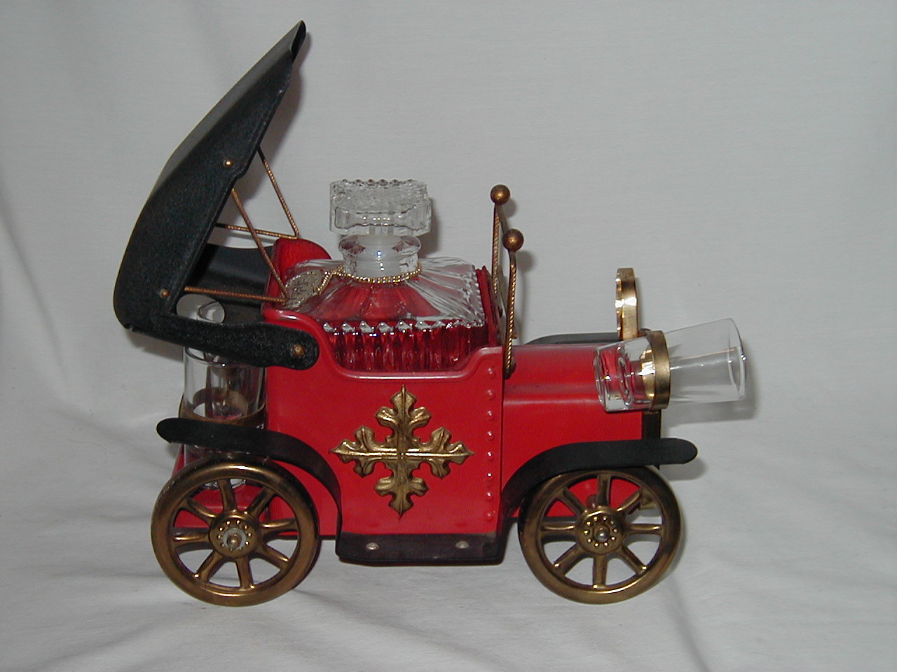 Fair, one glass out of 4 missing, right back wheel too close, missing small part on axle. |