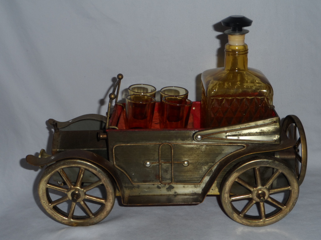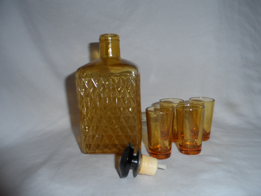 Metal and glass bottle and 4 glasses |