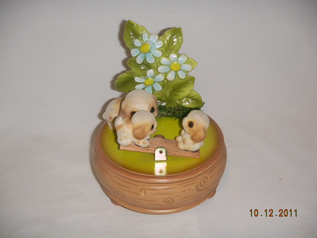 See-Saw with pups goes up and down with music. |