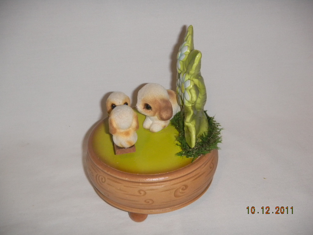 Stoneware, pups with felt feel. |