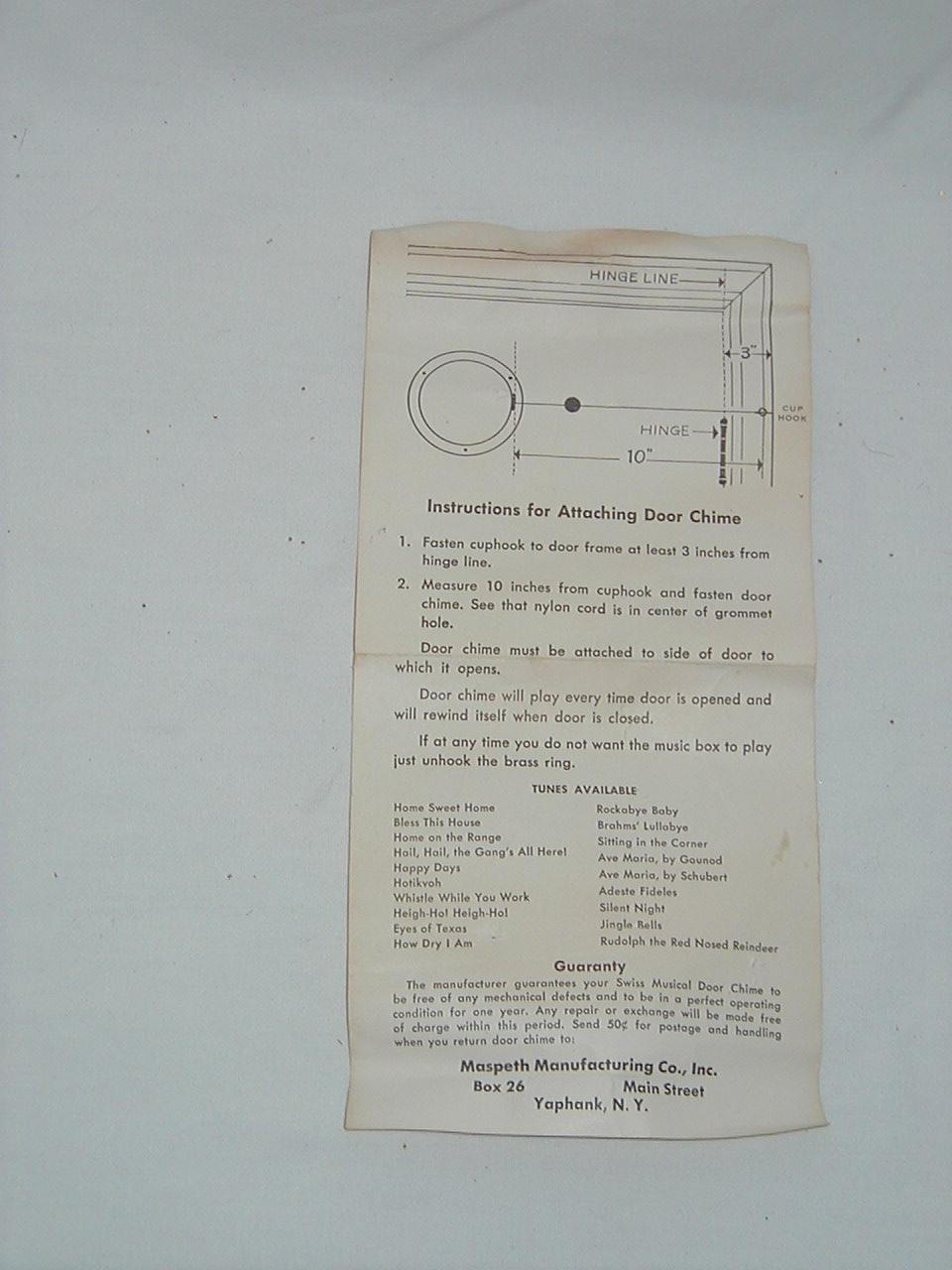 On insert: Maspeth Manu. Co.Inc., Box 26, Main Street, Yaphank, N.Y. |