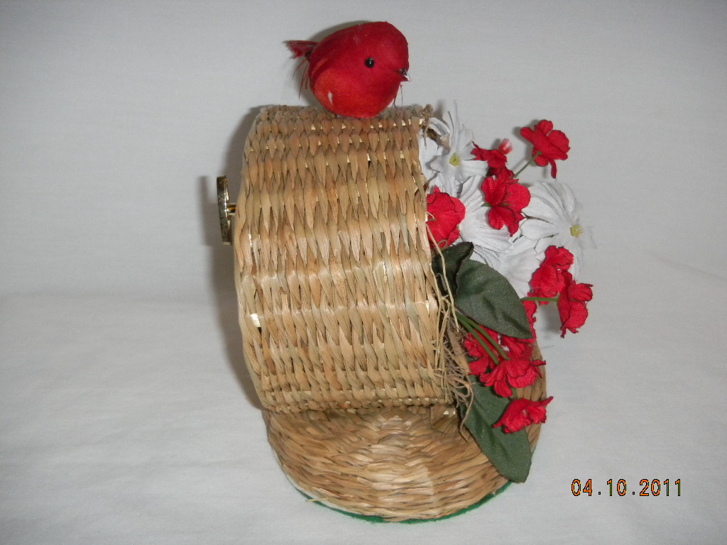 Straw basket with silk flowers, etc. |