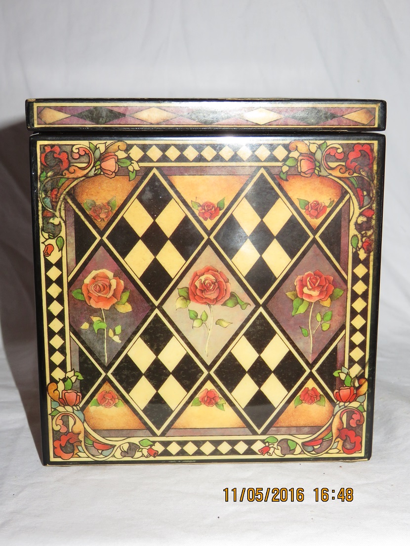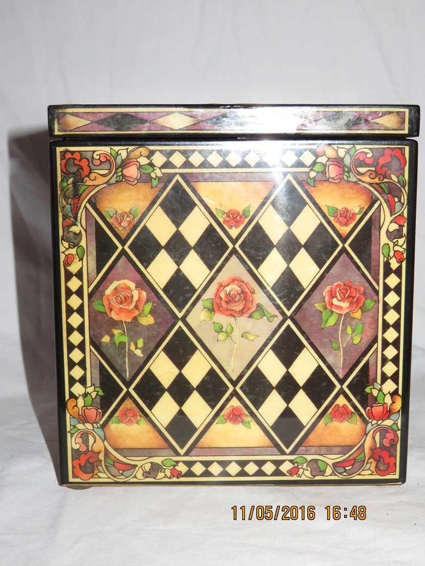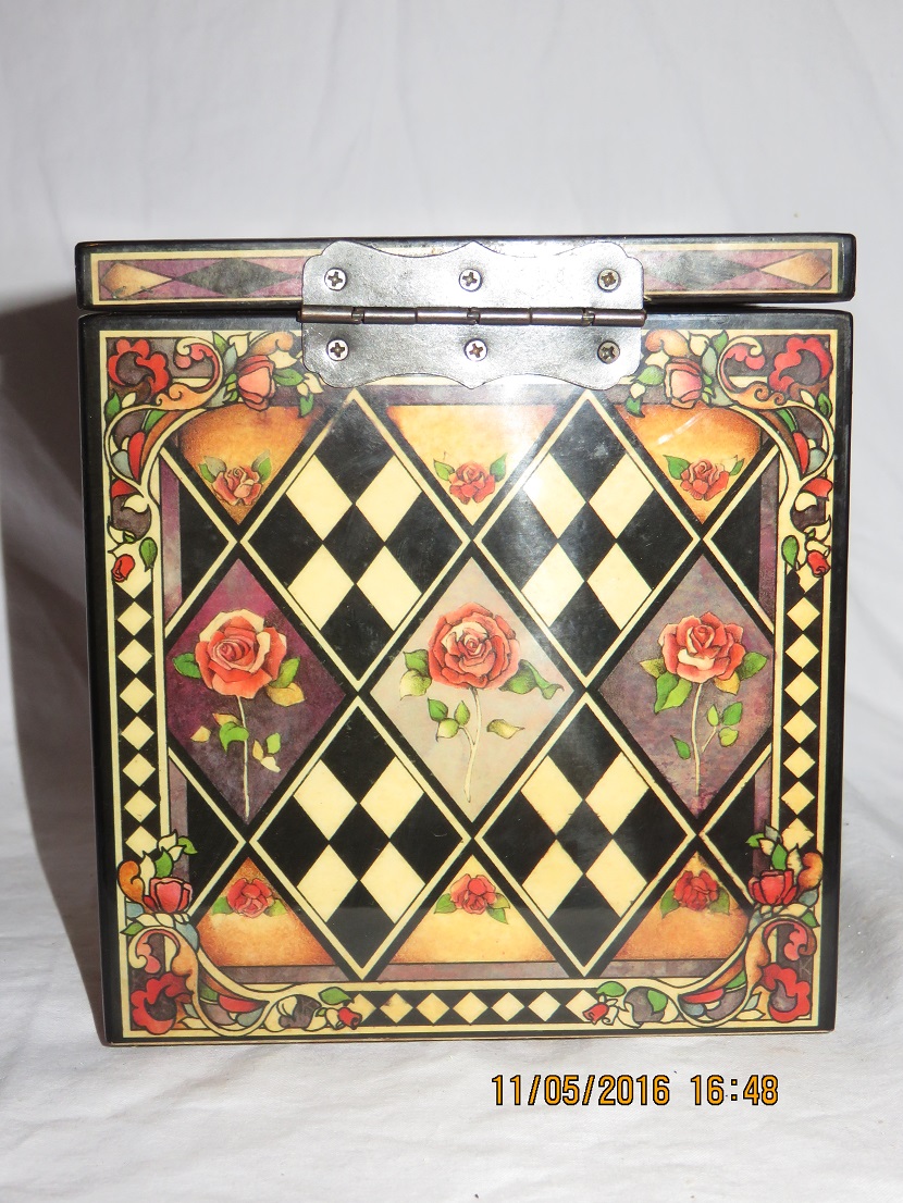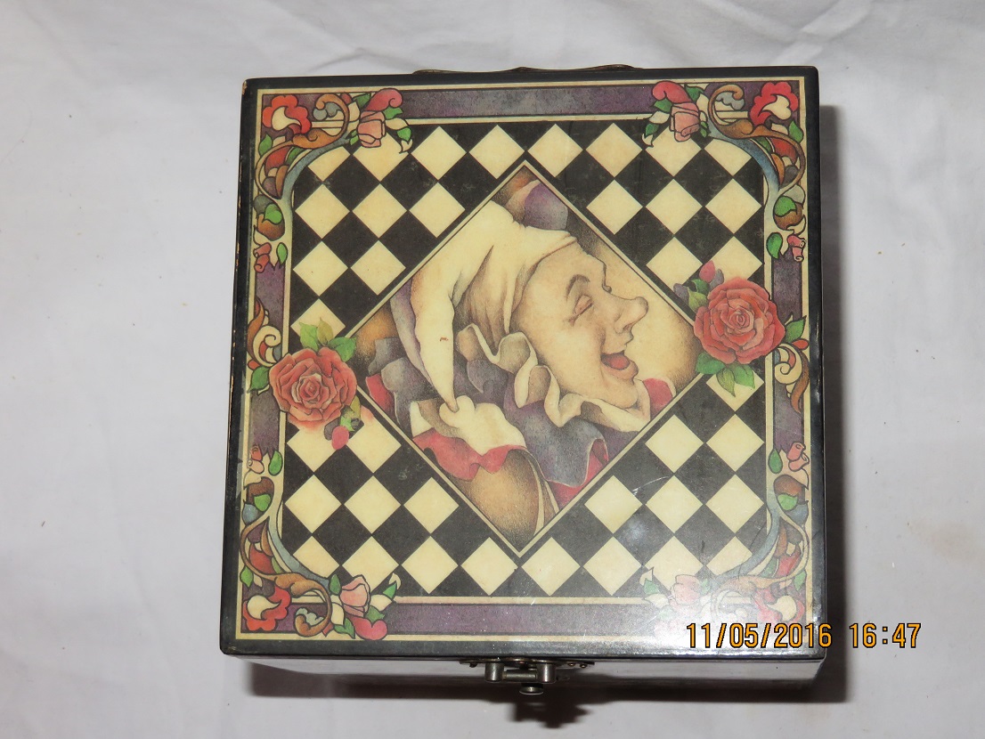 On bottom stencilled text a.o.: ' Scaramouche, Limited Edition, Musical Jack-in-the-Box. This collectible is strictly limited to a sequentially numbered edition of 7,500. Number 445 '. It is not strictly a jack-in the-box as clown does not spring up/out the box when the music plays, only when the lid is opened manually. All details on photo # 7.