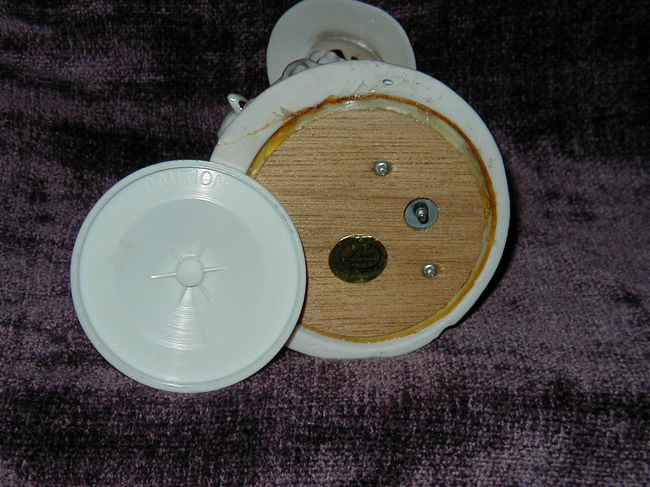 Yes, plastic, ' Caution do not overwind '. |