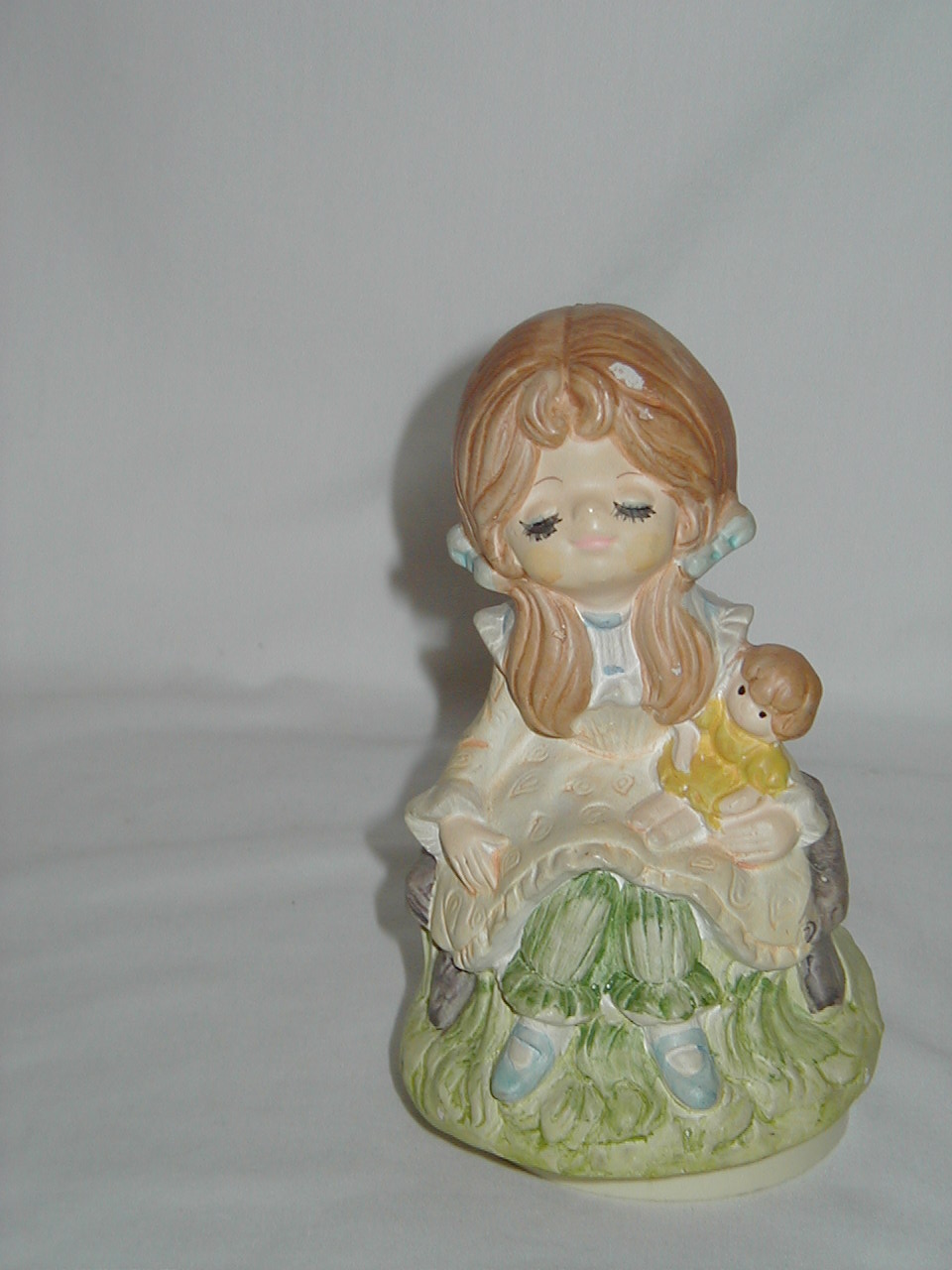 Girl Sitting Yellow Dress with Doll Yellow Dress