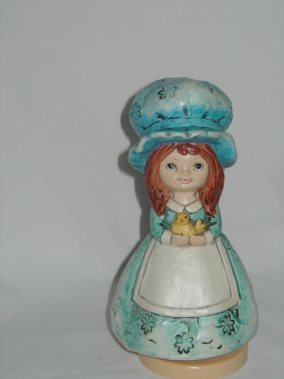 Schmid Young Lady in Blue Big Blue Hat with Yellow Bird in Hands