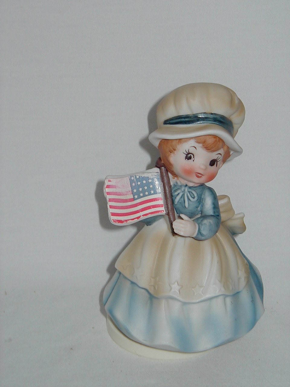 Young Lady (Betsy Ross?) in Blue Dress White Apron with American Flag