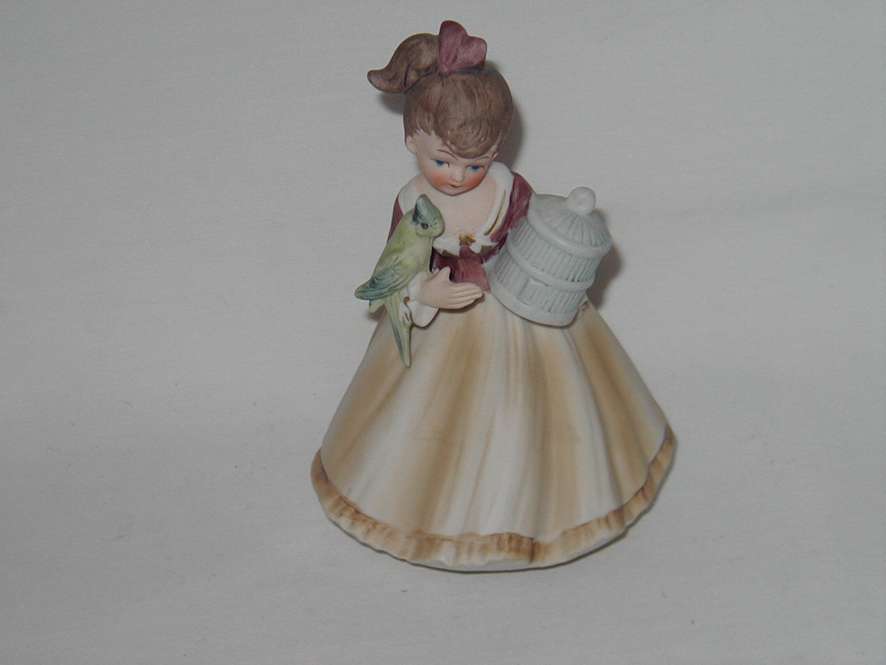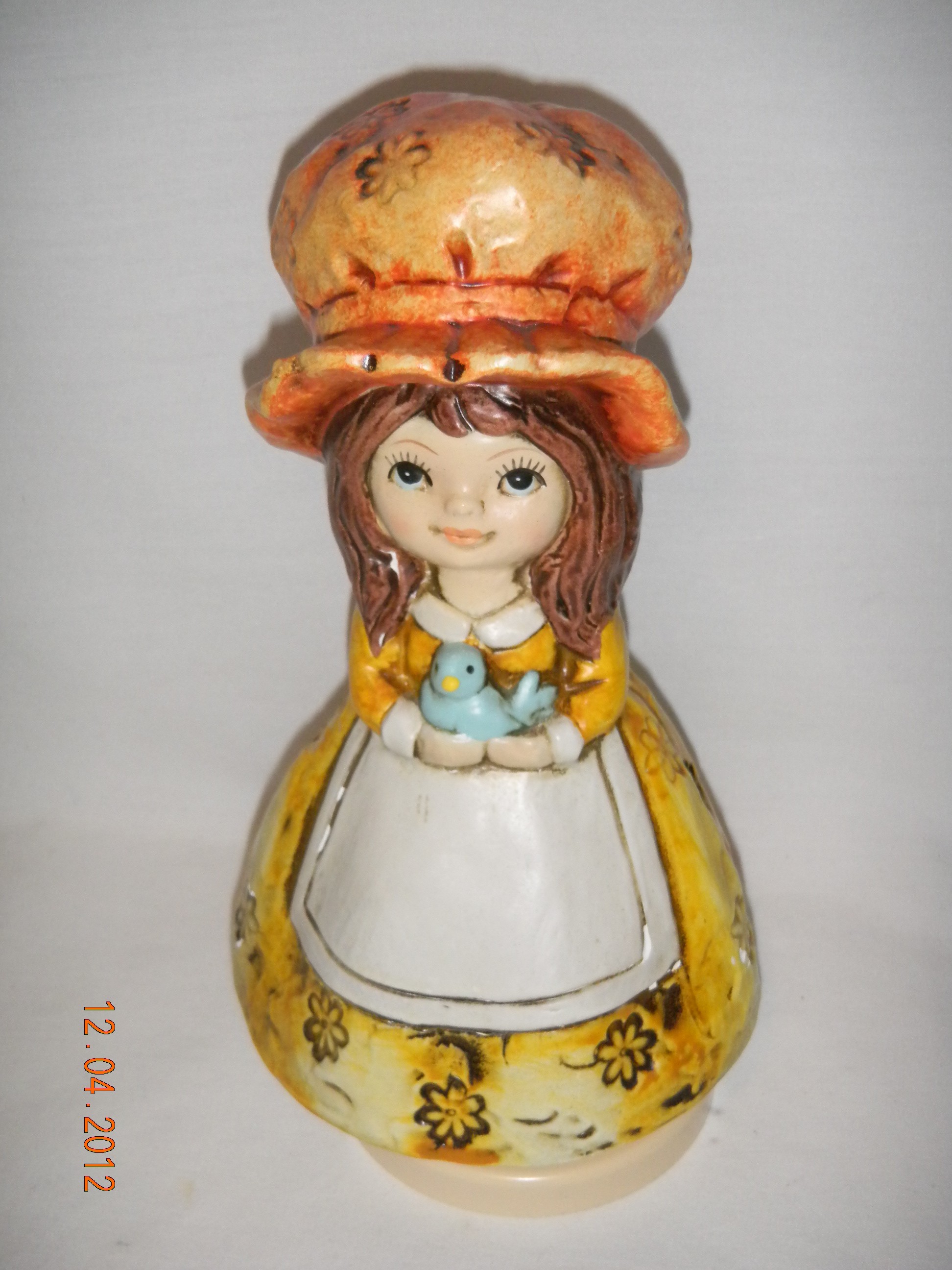 Schmid Young Lady in Yellow Big Orange Hat with Bluebird in Hands