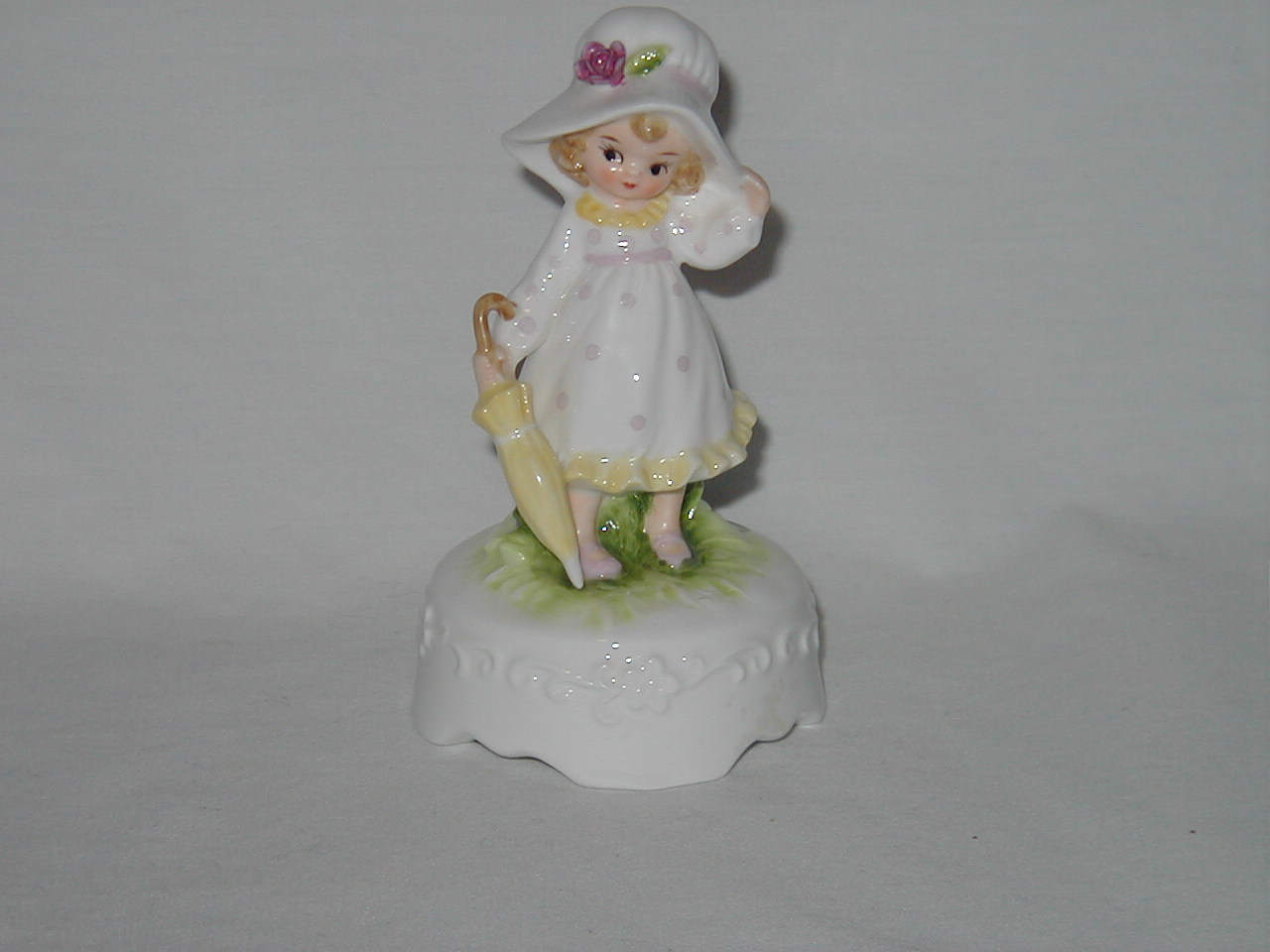 Girl in White with Hat and Folded Yellow Umbrella Small Glazed