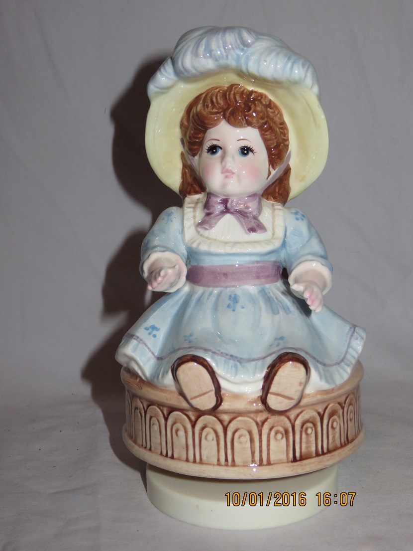 Schmid Girl in Blue with Pink Flower Bouquet