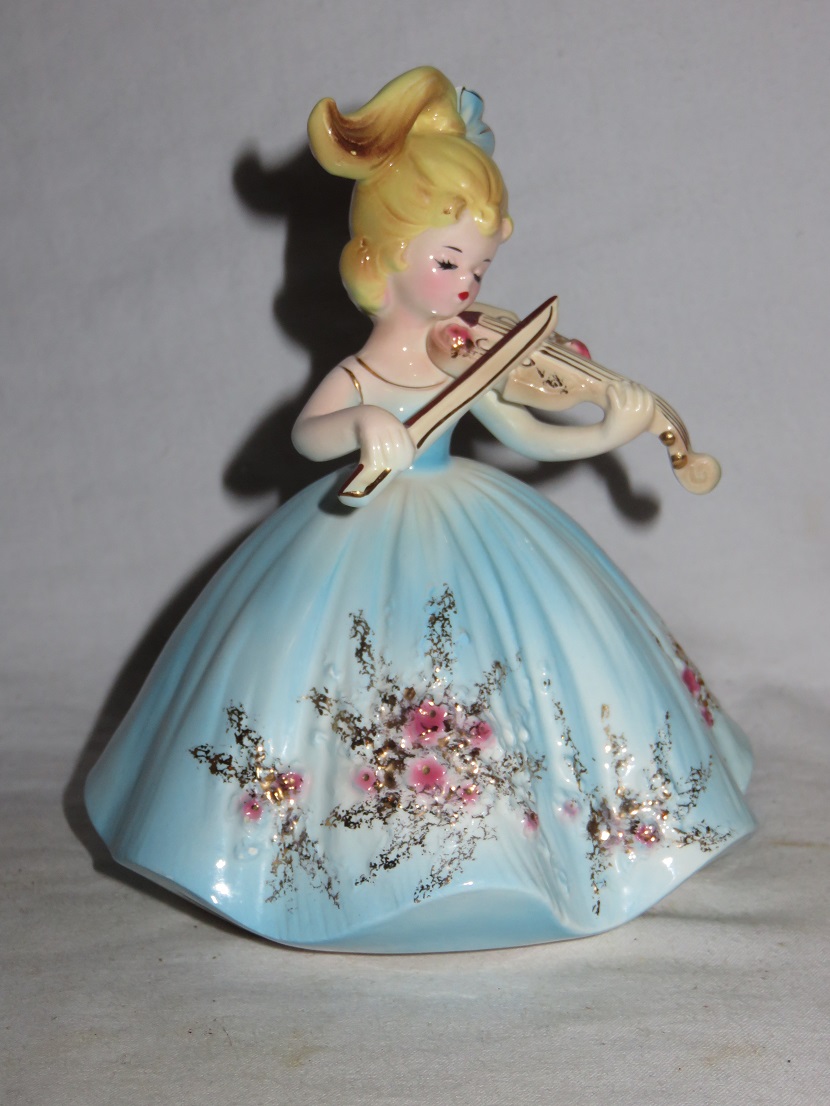 Josef Originals Young Lady in Blue Dress w. Flowers Playing the Violin