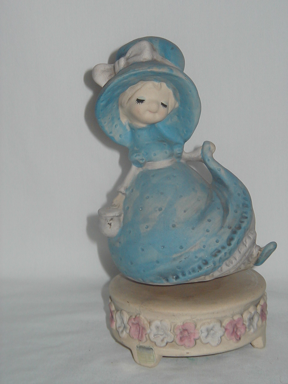 Young Lady in Blue with Blue Hat Tipping Skirt