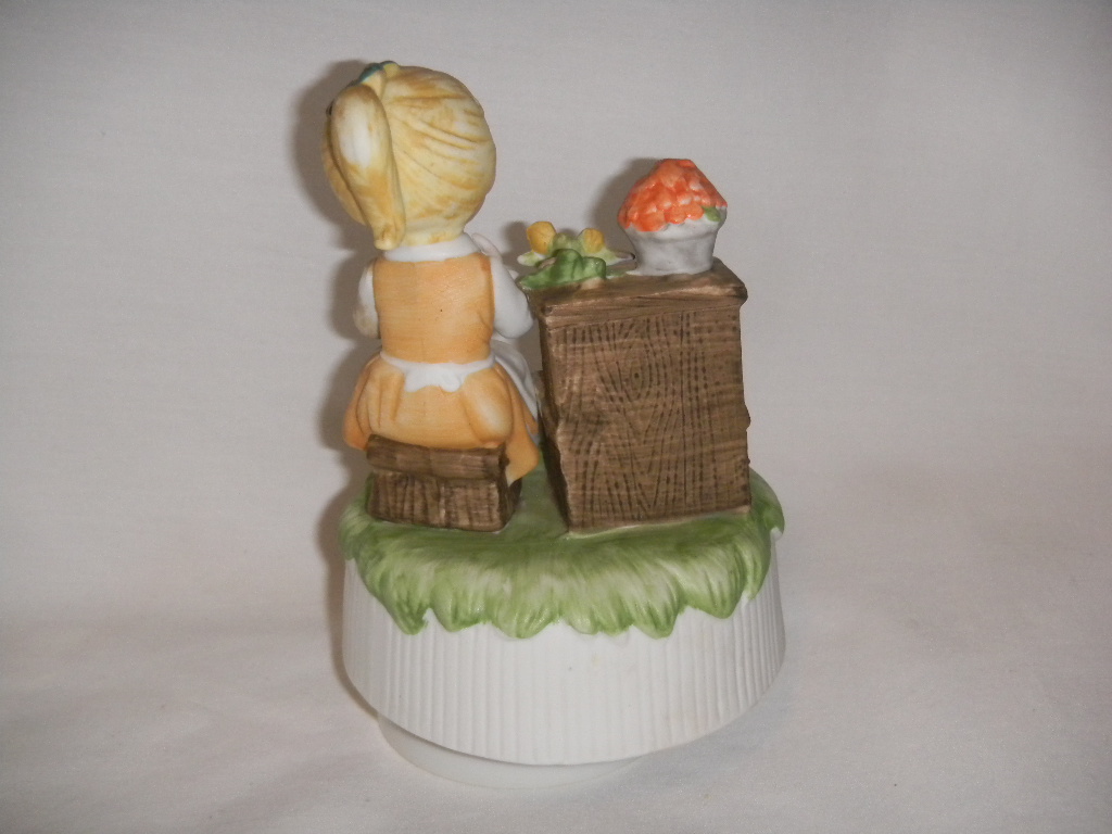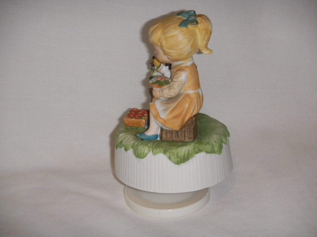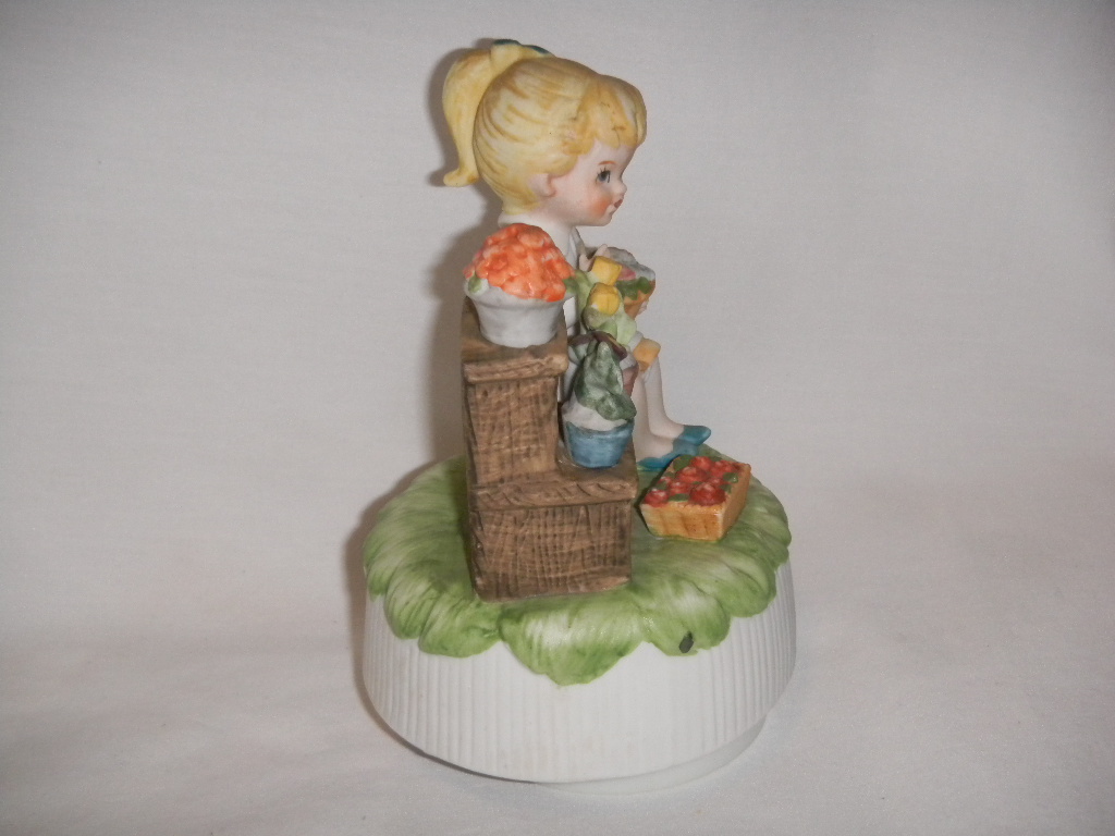 Good. Some coloring missing on bouquet in hand, from production. |