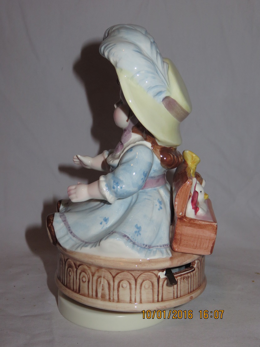 When acquired, a TJ Maxx sales label was right over the Ebeling & Reuss label and had to peel it iff to come to R &R label. Gave sales value of $16 and Sales price of $7.99. Figurine has box with toys in the back. |