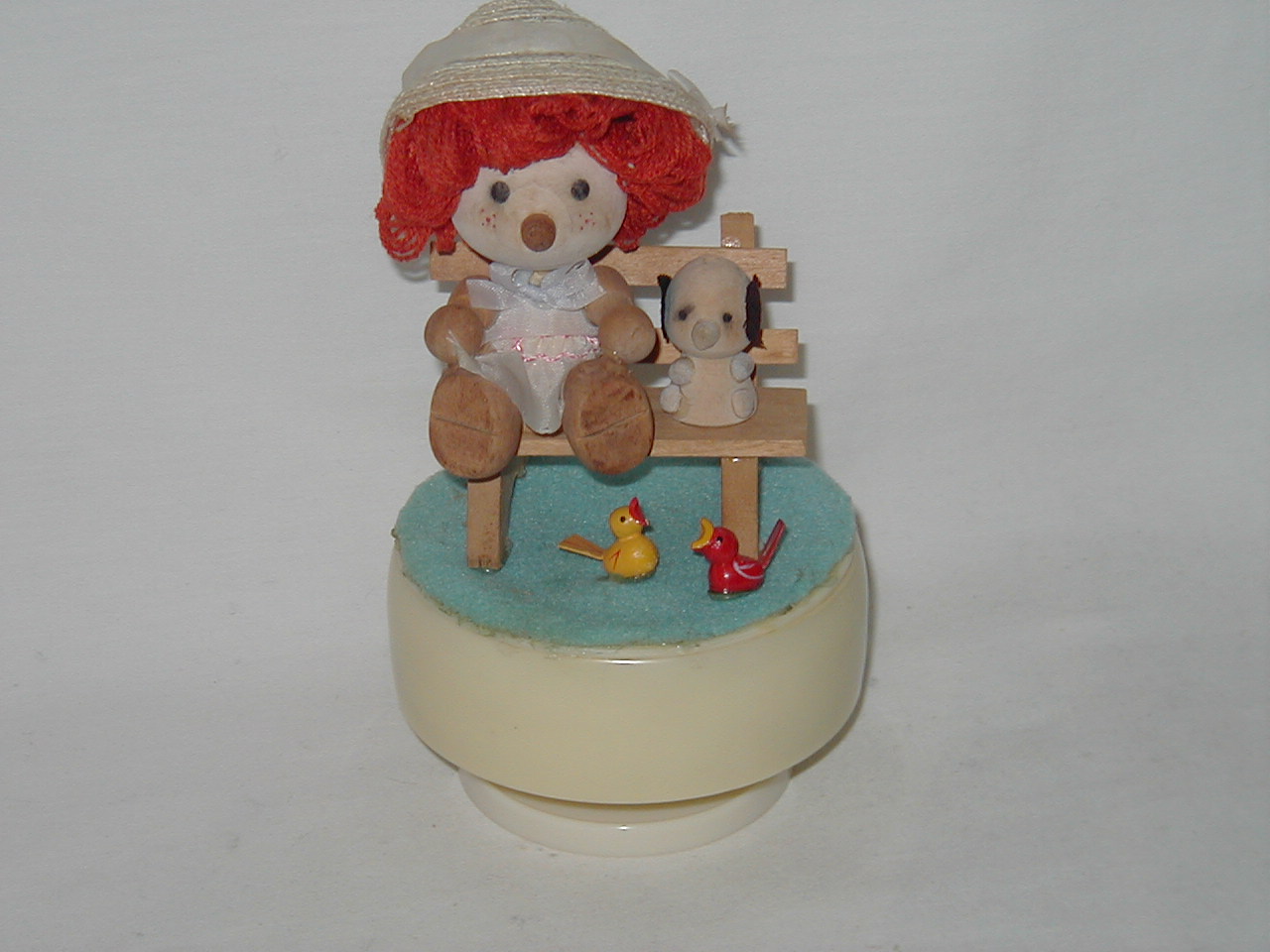 Chadwick-Miller Raggedy Ann Type with Dog on Bench and Birds