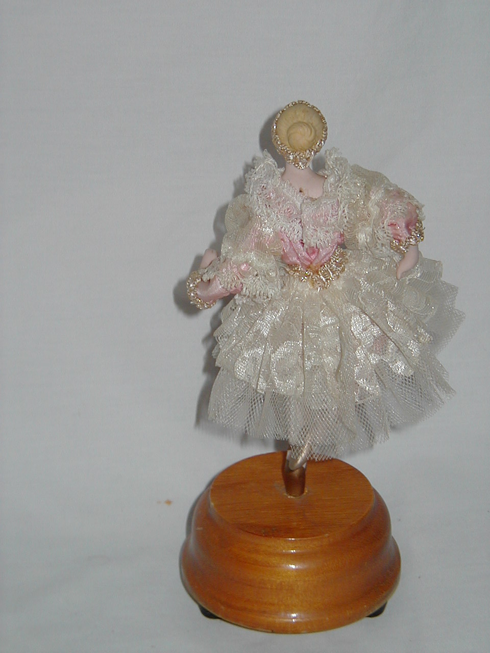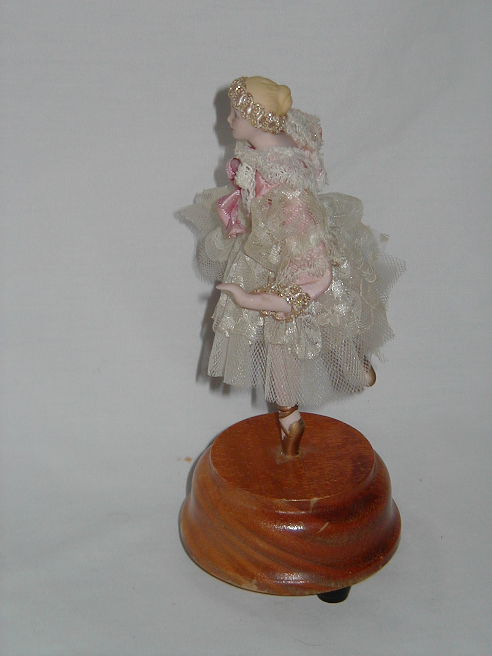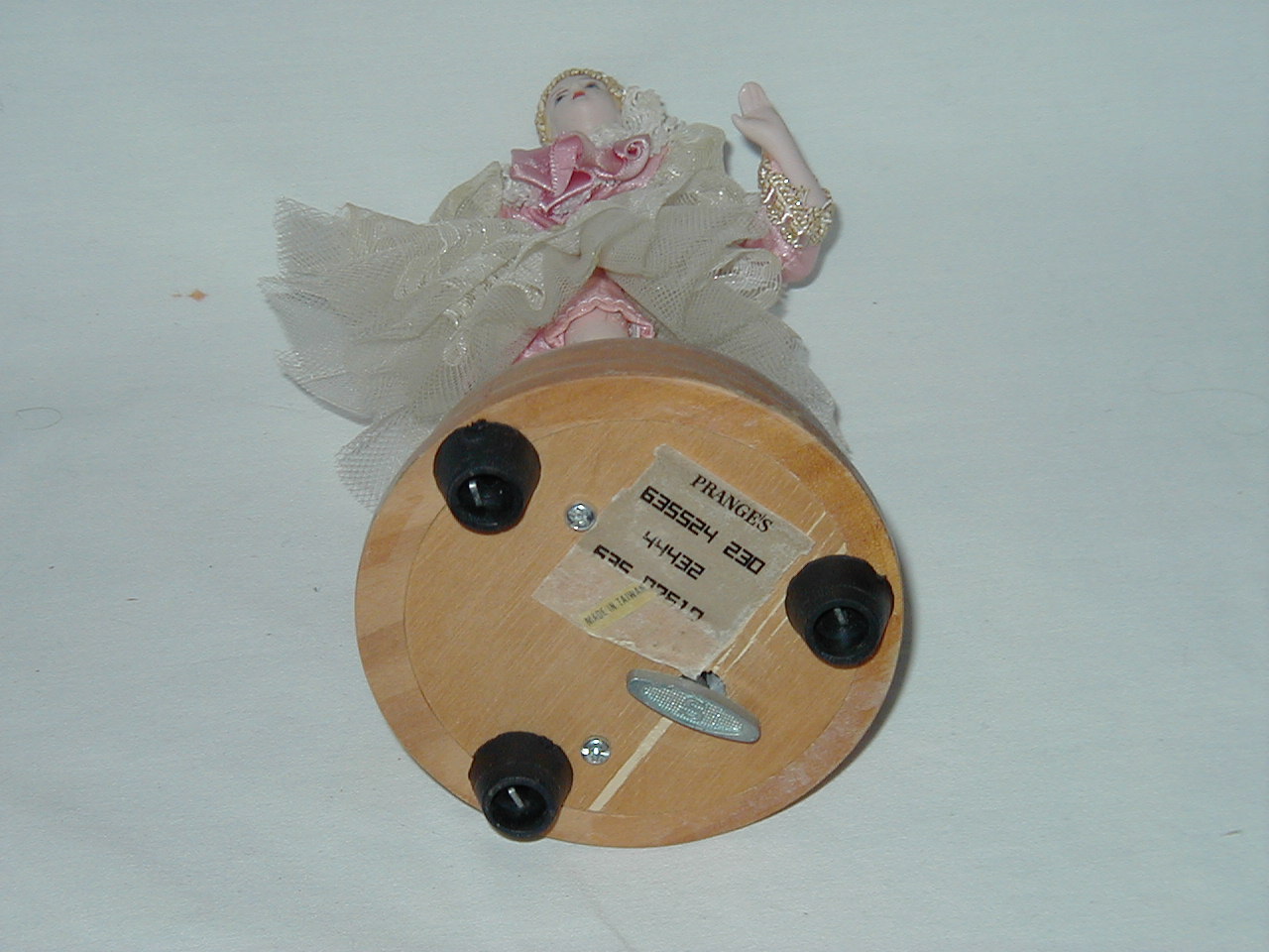 Wonder whether originally lady rotatesd on her foot and later foot reglued in place, or not. Bottom base seems original and untampered with. |