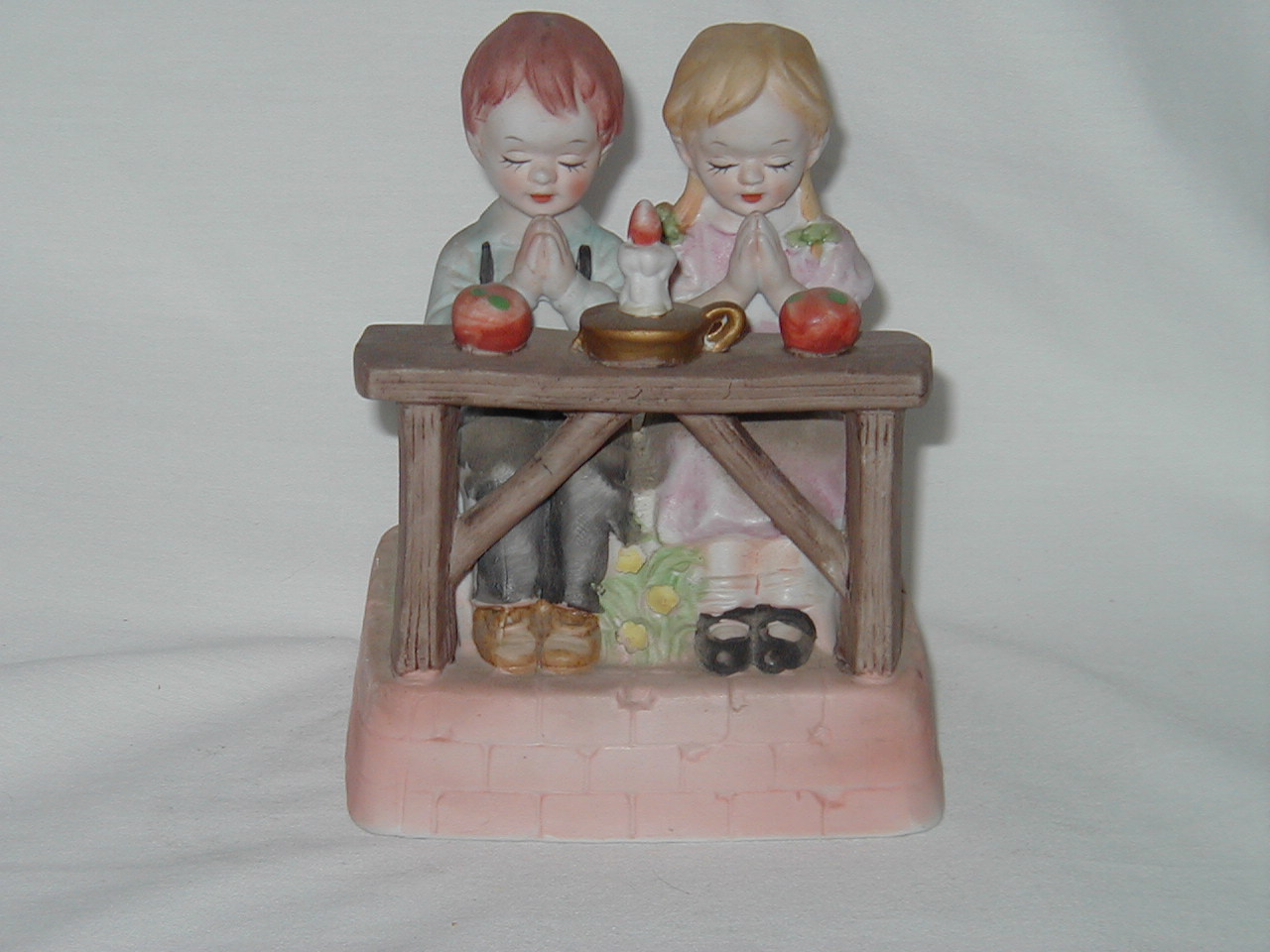 Boy and Girl Praying Before Meal and Candle